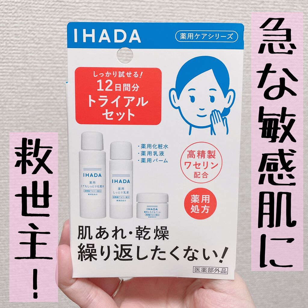 ✨IHADA12日間トライアル✨敏感肌さん向けのやさしいシリーズをお試しできるミニサイズセット💙💧ローション(化粧水)とてもしっとりタイプで、なじませるとお肌がやわらかくなる感じ🥺💦🕊エマルジョン(乳液)重たすぎず、しっとり感が続くよ✨ミルキ...