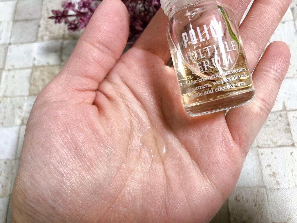 スノーロータス・ボタン・当帰・サンシチニンジン・シャクヤク・バーベナ6種の高山植物から抽出した保湿成分が肌の乾燥を防いでくれます。 ポイントとして、高山スノーロータス(雪蓮)エキスは持続的に保湿してくれる成分。 この美容液、手にしてみると重厚感すごい!デザインが本当に素敵だし、瓶の中にキラキラしているものが入っているのもキレイです。 これは人肌で溶ける雪形の美容成分❗️ほんの少しとろみのあるテクスチャーでスッとなじむ気持ちの良い美容液です😊