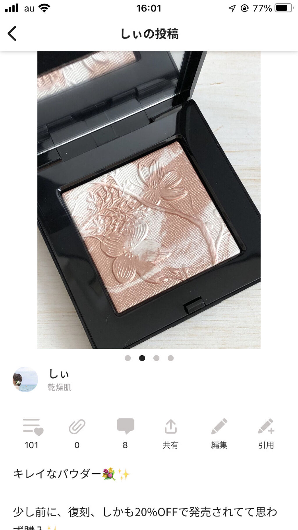 | ハイライト・シェーディングランキング第4位 | 粉質はしっとりしています。 肌馴染みが良くて浮きすぎることなく 使いやすかったです。 | 詳細を見る | |