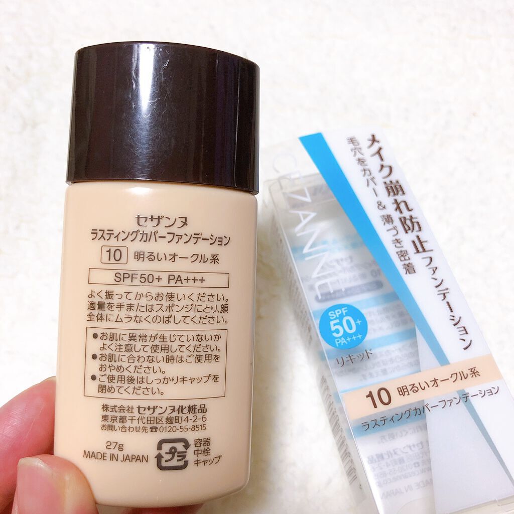 CEZANNEラスティングカバーファンデーション00明るいベージュ系¥748普段はノーファンデ民だったんですが、最近シミや赤みなど気になるところが増えてきて、肌全体を均一にカバーしたいなと思い使ってみました!カバー力は強すぎるわけではなく、自...