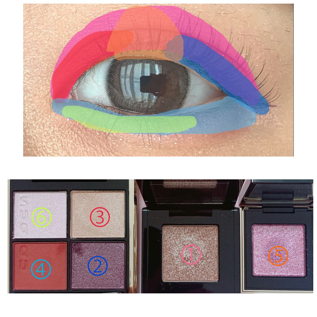 スモーキーかと思いきや煌めきもあるから華やかさも✨ SUQQUホリデー限定のパレットはアイシャドウ4色にハイライトがセット。 アイシャドウは一見無難?に見えるけど実はひとくせあるカラーたち! でもメイクすればまとまるのはさすがSUQQU。 ハイライトは思ったより煌めかずナチュラルな艶感になるのが、私は逆に嬉しかった。 マーブル模様はミルクティーをイメージしてるんだって。