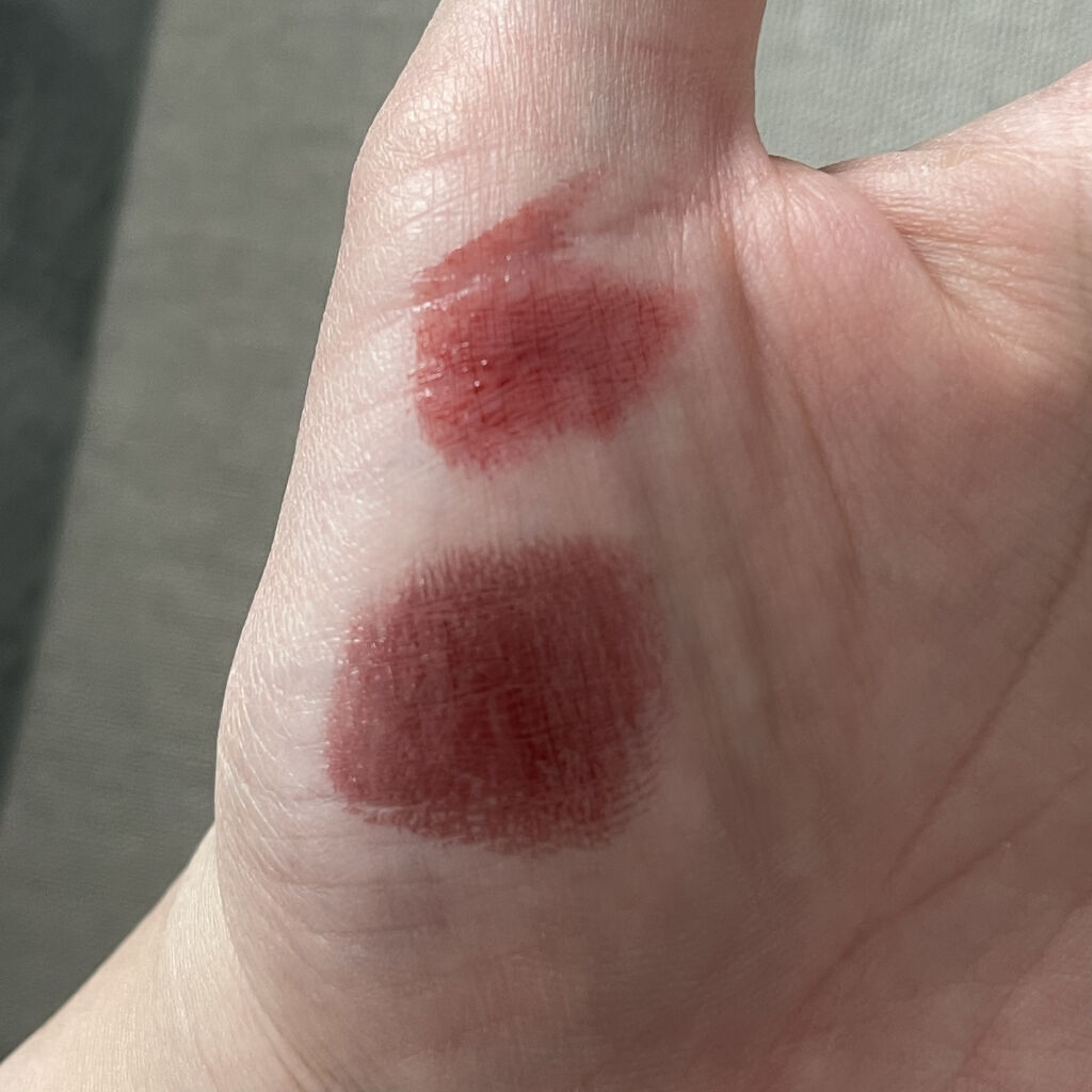 しかし塗り心地は抜群!スルスル塗れて、M・A・Cのリップスティック(紹介済み)は唇が少しでもフラットの状態じゃないとムラのようになってしまいますが、ラスターガラス リップスティックはそんな事はなく、均一に濡れるのが見た目が非常に綺麗です! ラスターガラス リップスティックを使用する際はティッシュオフからのポンポン塗りにしてますが、個人的には1度塗りだけで終わらせたい!だって最強に可愛いんだもん!マスクさえなければ!🤬 今回購入した3色の中で1番万能な色で赤強めちょっとブラウン入れました、というような、色味。カジュアルでもオフィスでも使える色だと思います。ティッシュオフするとツヤが少なくなる分オフィス向きかな? インスタのラスターガラスの投稿で一番最初に目をつけた色だけありました!新色ではなく既存色のリニューアルのようです!