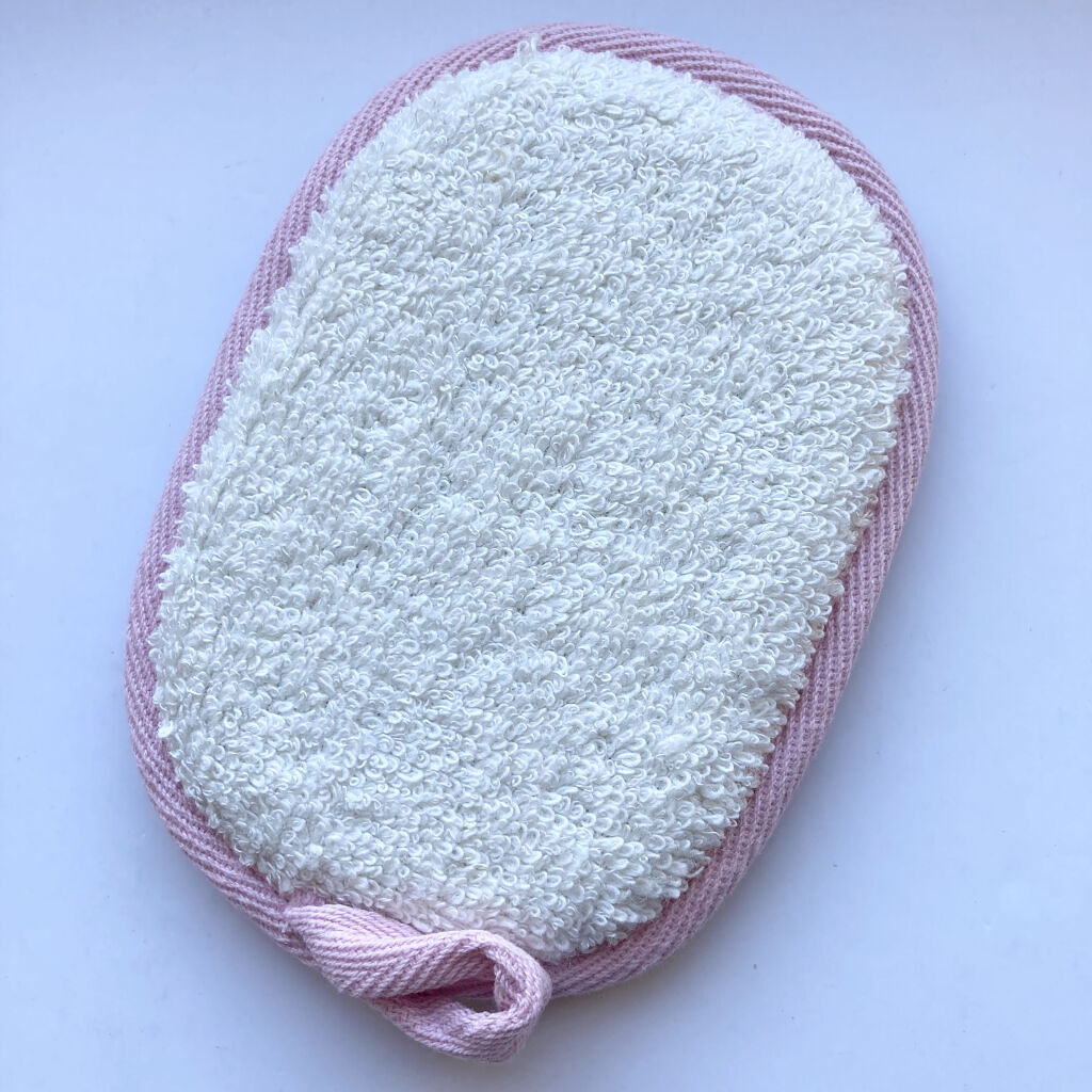 - くびれパフがしっかりフィットする垢すりです。ハードな刺激で、しっかりあかすり。洗い上がりはさっぱり、つるツヤです。