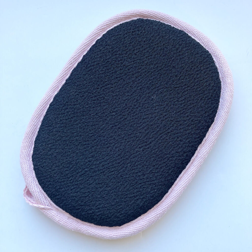 気になるボディのあか・ザラつきをスッキリ落として、ひとかわむけたようなつるつる素肌へ導くパフ。 特殊なしぼり加工を施した細密ちりめん織り たまった垢や汚れを落とします。 黒いので落とした角質が目で見て分かるがいいですね。