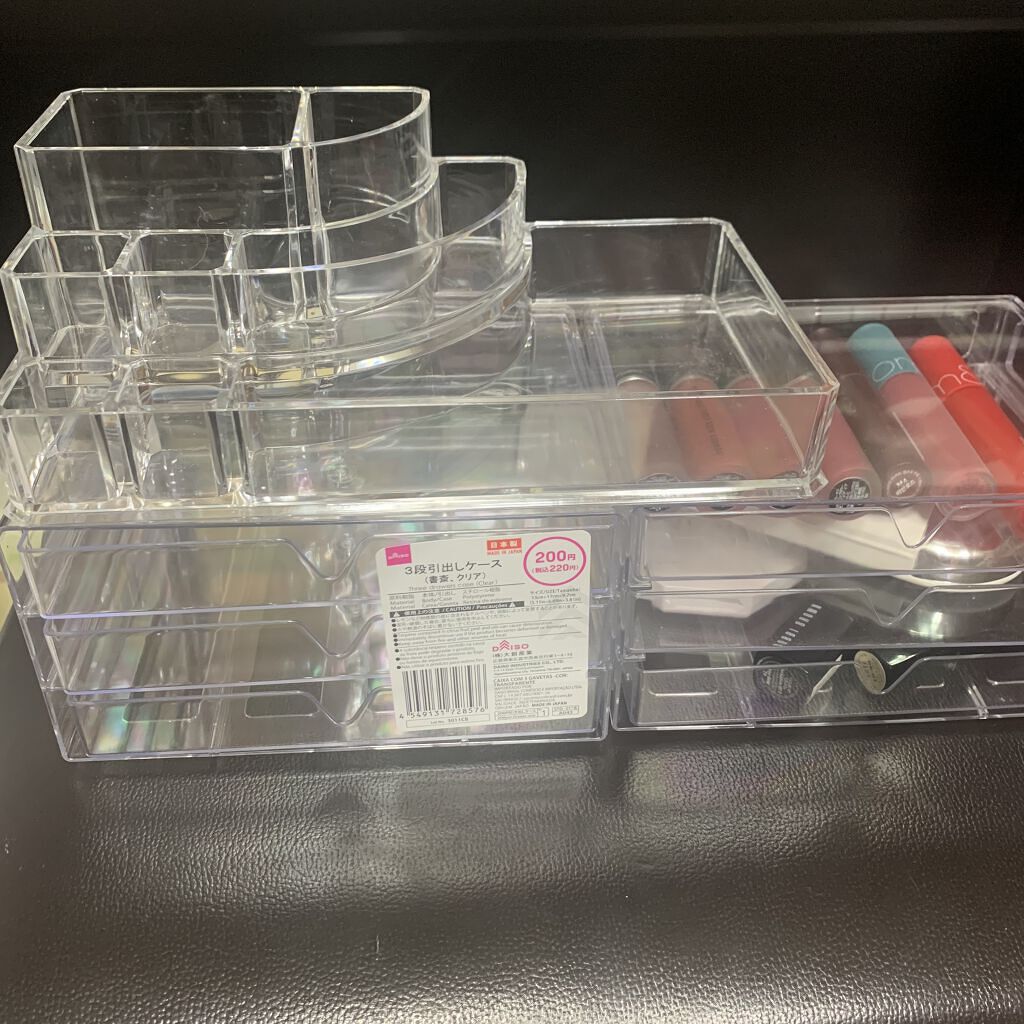 ダイソーで簡単に作れる! コスメボックスを2つ紹介します🙌🏻 コスメの量が少なめ〜普通の方におすすめです👍🏻 私が使っている(中)は、小物ケースがシンデレラフィットします! ダイソーでつくるメイクボックスは中身をかなり自由にカスタマイズできるので使いやすいし、本当に楽しいです!!