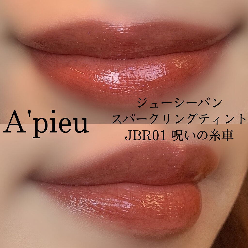 ❤️A’pieuジューシーパンスパークリングティントCR01オトメなナツメ❤️うるうるキラキラな可愛い唇に仕上がるティント💄💕ラメ入りですがザラザラ感はなく、ちゅるんとした仕上がりです😚こっくりとしたブラウンコーラルにラメが入っていて華やかで...