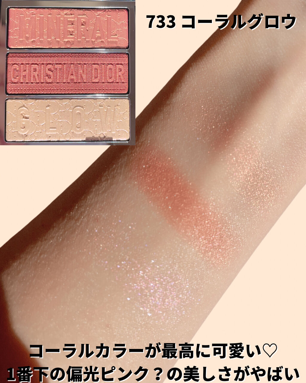 - 春の訪れを祝して、アイコニックなディオール オブリークのモチーフからインスピレーションを得た限定デザインのアイシャドウ パレットが登場。今春のテーマ「MINERAL GLOW」の文字が刻印された3色のアイシャドウは、ピンク系とコーラル系の2つのハーモニーで春の目元を華やかに彩ります。