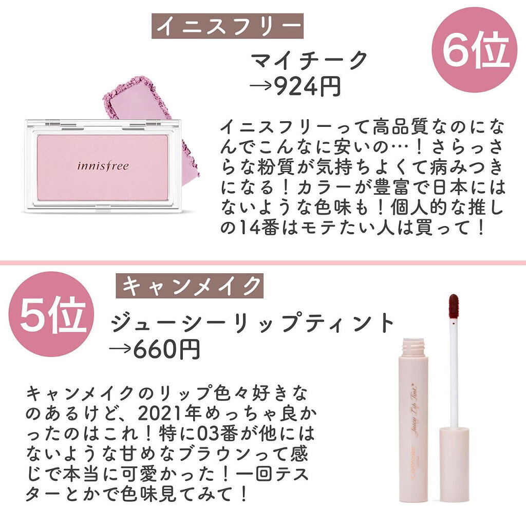| 口紅・グロス・リップライナーランキング第61位 | ほんのりフルーツみたいな良い香りがします🍎 付けた感じのテクスチャーはぷるもち系ですね | 詳細を見る | |