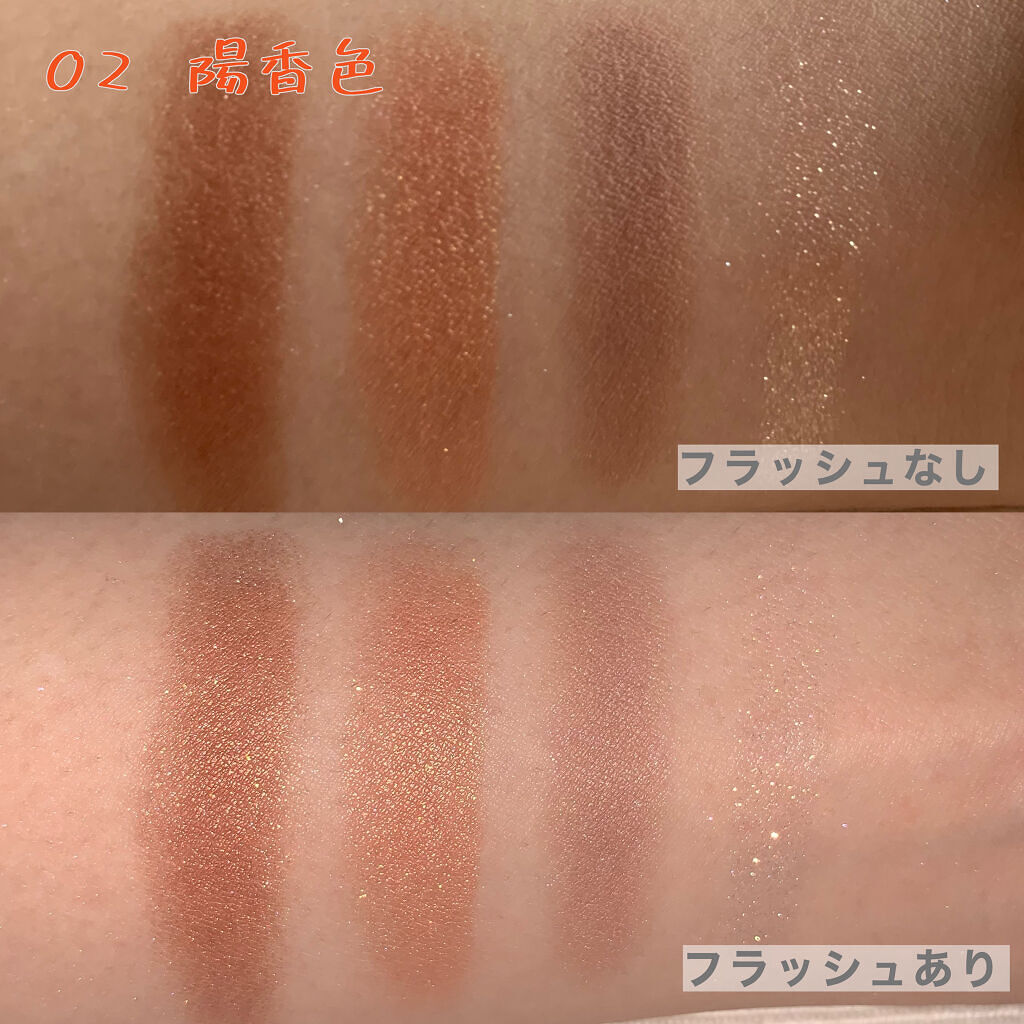 ・なんと言っても発色が神!! ・これ一つでアイシャドウとハイライトができる!(ハイライトは大人しめ) ・コンパクトでお化粧直しとして持ち運べる! ・左上の色は明るすぎないから誰でも使いやすくて、夏も秋も使える! ・左下のラメは大粒で可愛い!綺麗! ・イエベさん向きではあるが、挑戦しやすいカラー!