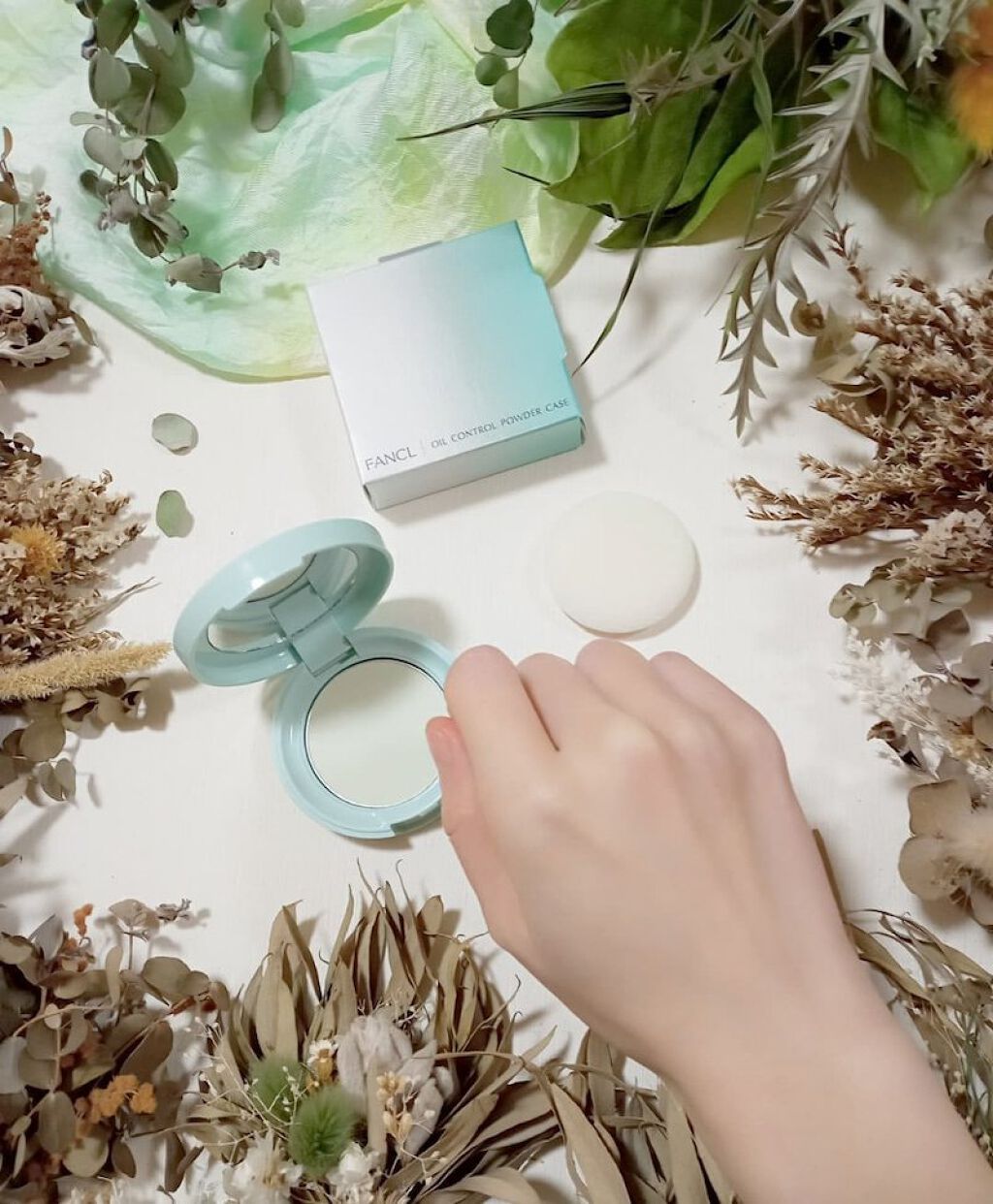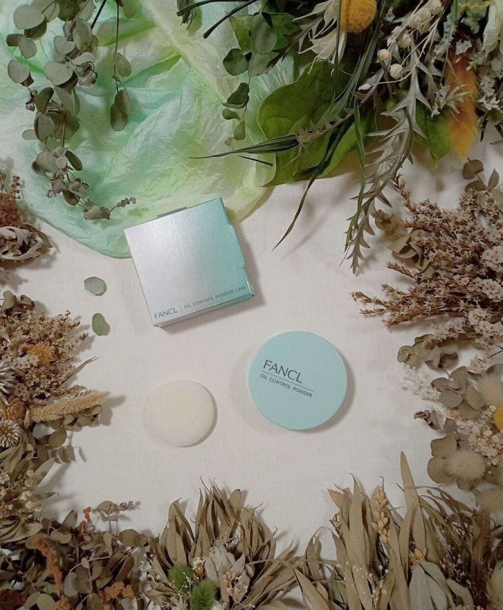 スキンケアの最後に使うことでテカリやべたつきを気にならなくしてくれるというスキンケアパウダー! 淡いグリーンカラーで色ムラもナチュラルにカバーしてくれるとのこと! 甘草成分誘導体、イオウ(有効成分)・漢植物エキス(保湿、肌あれ防止)・緑茶エキス(保湿、肌あれ防止)を配合しているとのことで荒れがちな肌にも使いやすいのが嬉しいつくりでした◎