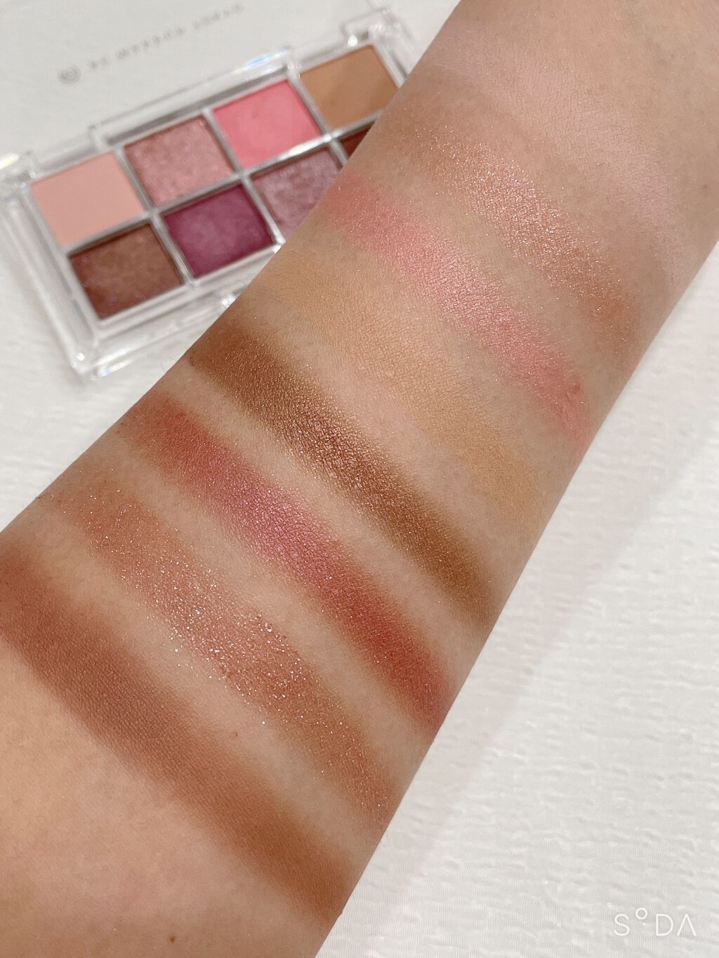 ミルクラテはラメがめっちゃ綺麗✨️ 透明感のある目元が作れるよ😊💓 ダスティローズが可愛いヴィンテージローズは発色もよく華やかなメイクが出来るよ🌹 コンパクトなサイズで持ち運びにも便利🥰