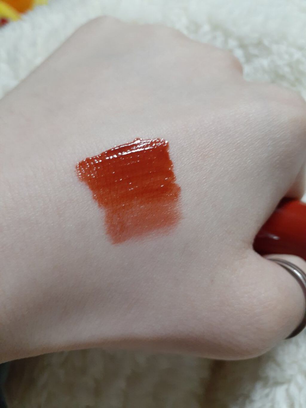 【使った商品】ロムアンドのジューシーラスティングティント【色味】#13EATDOTORI オレンジよりのブラウン王道でかわいい💖【色もち】すごくいい!でも唇の内側に色が残るかも【質感】つやつやで水っぽい【保湿】冬には厳しいかも、、【良いと...