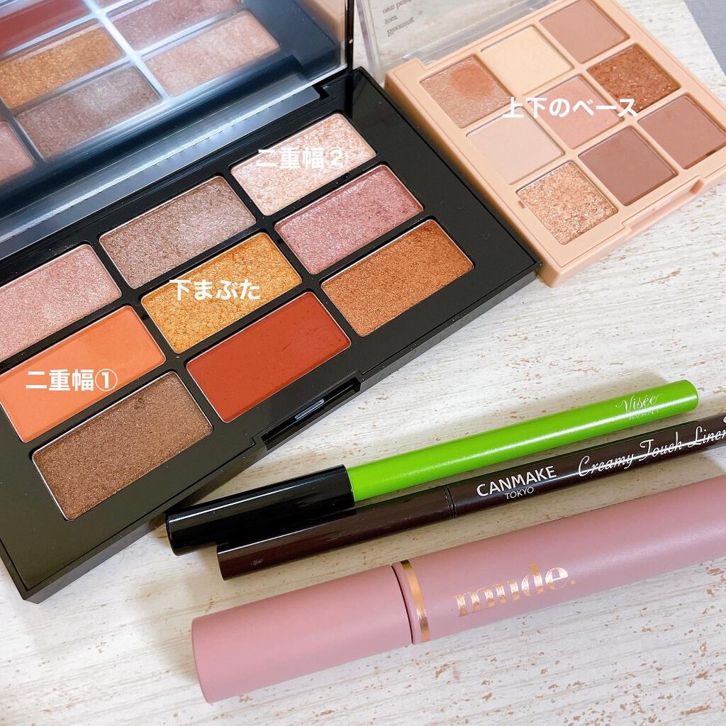 ▶︎CANMAKEパーフェクトスタイリストアイズ23アーモンドカヌレ前回投稿したアーモンドカヌレを使ったメイクを2パターンご紹介します🙇♀️▷左下(B)を使用したメイク左下(B)はアーモンドのような濃いブラウンですが透け...