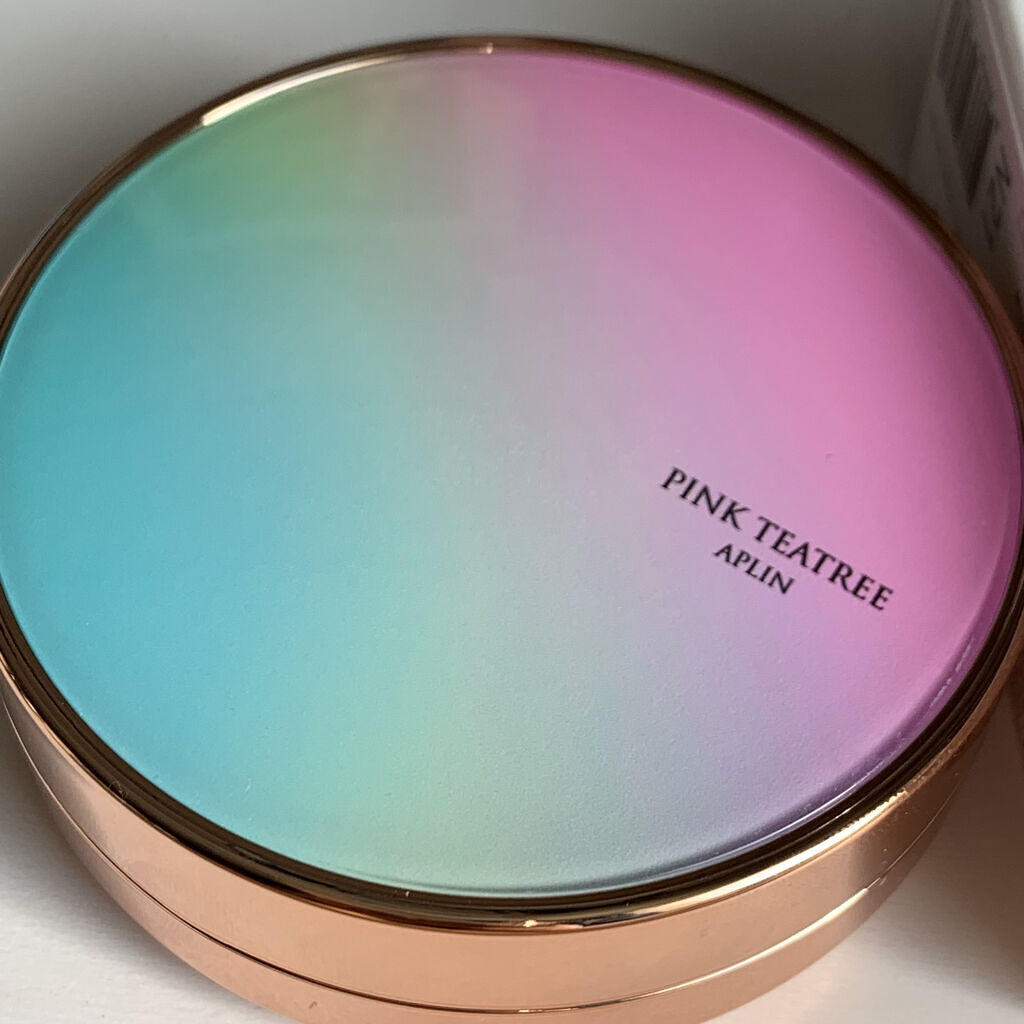 APLIN ピンクティーツリーカバークッション 21号ライトベージュ 2,490円(税込) 少量でよく伸びてハイカバー! 赤みやくすみをしっかりカバ一できるのに、厚塗り感のないなめらかな仕上がり♡ ハイカバーなのにナチュラルなツヤ感とサラッとしつつ、乾燥崩れしにくい仕上がりに感動します!!