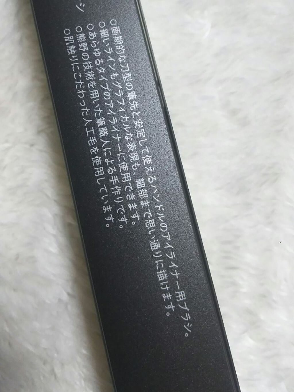 - 繊細なラインが描ける斜めカット形状のアイライナーブラシ。さまざまなタイプのアイカラーでアクセントをプラスするのに最適。 ○斜めにカットした刀のような筆先で、目もとの細部や正確なラインが自由自在に描けます。 ○熊野筆の技術を用いた筆職人による手作りです。 ○肌触りにこだわった人工毛を使用しています。