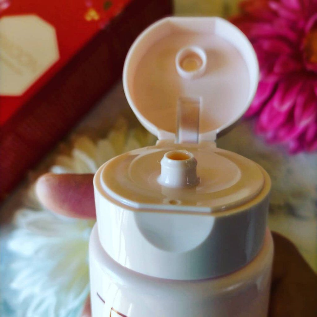透明感とみずみずしさが、感じられるデザインそのままのテクスチャーです。 500円硬貨大をコットンに含ませ、お肌に馴染ませると、ベタベタしない、本当にサラサラした【水】が感じられます。 肌に馴染み、お肌がぷるぷるとしたイメージで、ずっと自分の肌を触りたくなる良い感触(ㆁᴗㆁ✿) 紫外線を浴び、ピリつく肌にもエアコンで乾燥した肌にも、優しく潤うのがお気に入りっ。 テカリやすく、皮脂過多な夫も気に入って使っていますよ。