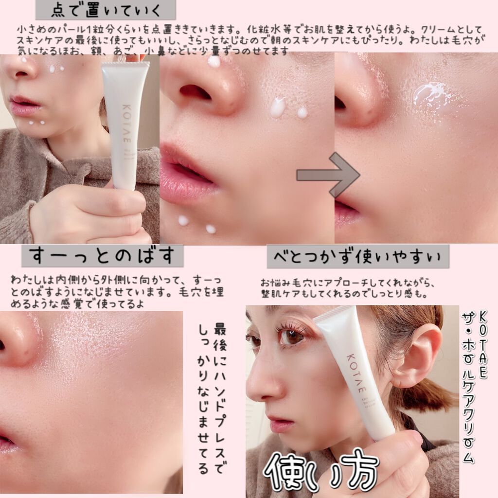 集中毛穴ケア#kotae#ザホールケアクリーム¥5478KOTAEの再生医療に着目して作られた美容クリームの紹介です💛ビタミンABCE、再生因子が配合されたトリプルケアのできるクリームです。・使用感こってりとしたテクスチャーでやや重め。少しず...