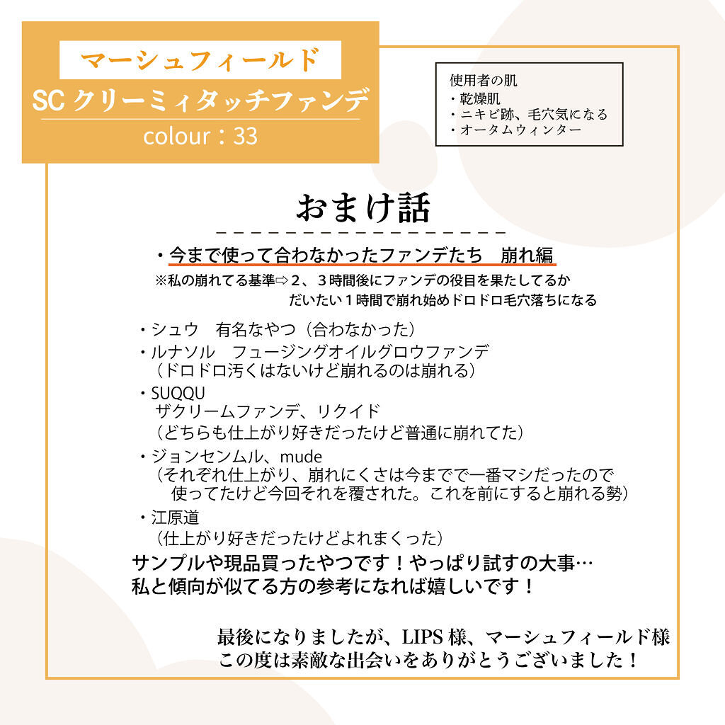 肌悩みを綺麗に隠すなら♡マーシュフィールドSCクリーミィタッチファンデ母斑、血管腫、白斑、火傷跡、傷跡など肌色にお悩みを抱えている方のために開発されたカバーメイク用化粧品ブランドなのでそのコンセプト通りカバー力がすごいです粉ファンデではないの...