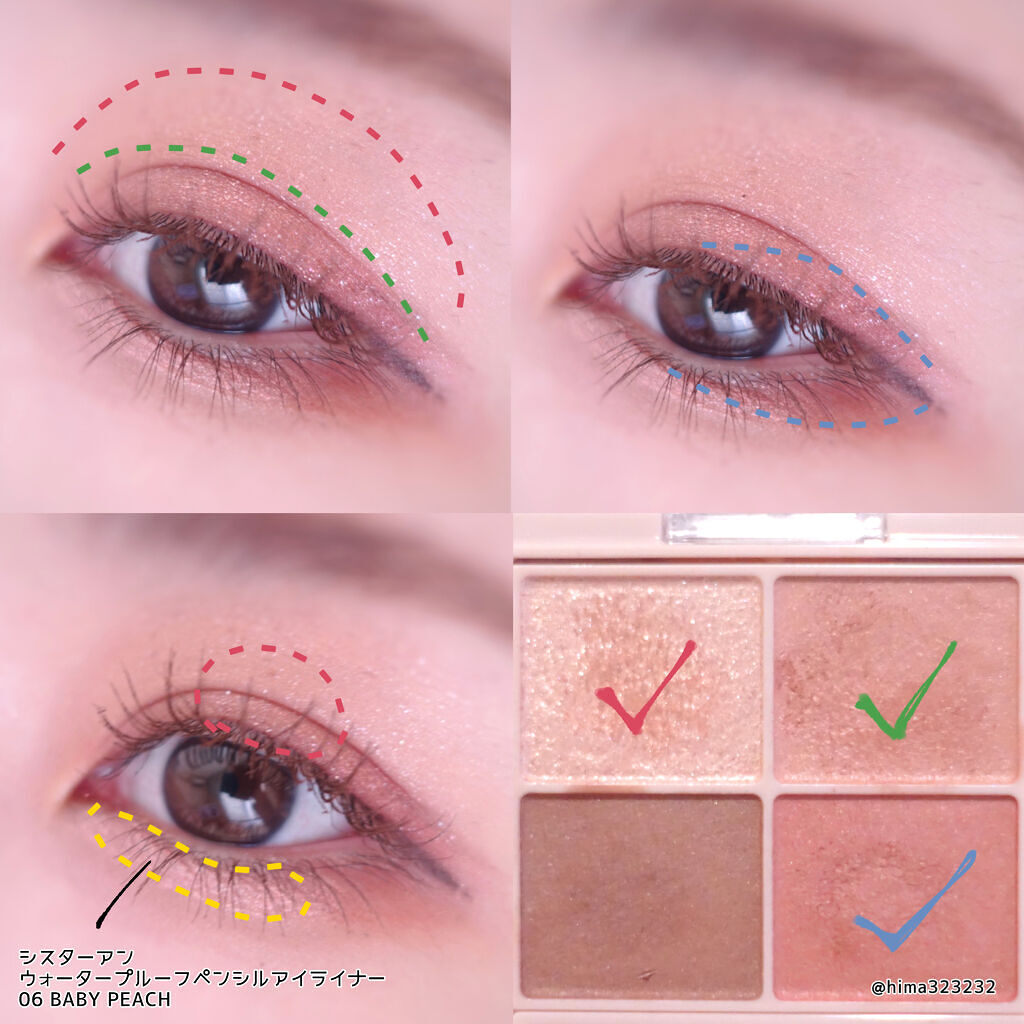 ①指でベタ塗りしない ②濃い色を広く入れすぎない ③目頭側に広く色を入れない ④下目尻は2色混ぜて使う ⑤色の境目はぼかすorラメをのせる ⑥涙袋の影は入れすぎない ⑦涙袋にラメを乗せすぎない ⑧マスカラ・グリッターはつける量を調節する ⑨マスカラのダマはコームでとかす ⑩アイラインは目尻だけ
