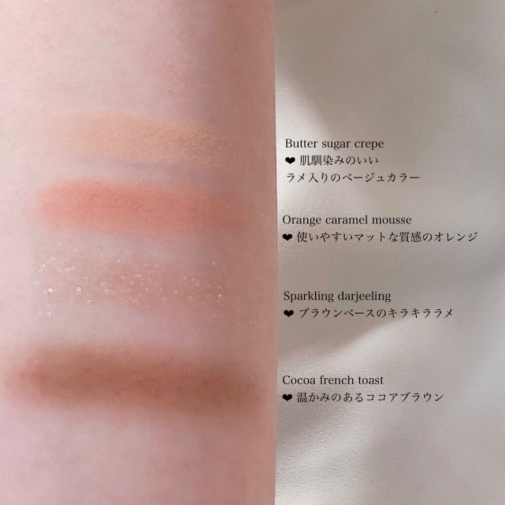 全色ラメがぎっしり入っていてすごくかわいい❤︎ 個人的お気に入りカラーはEX-3 舞踏会の主役 💗💗 一応パーソナルカラーで分けてみましたが透け感のあるカラーなので重ねて使ったりするとパーソナルカラー問わず使えるので参考までに…🌷♡ 数量限定で全色限定カラーなので売り切れ続出することが予想されます💭