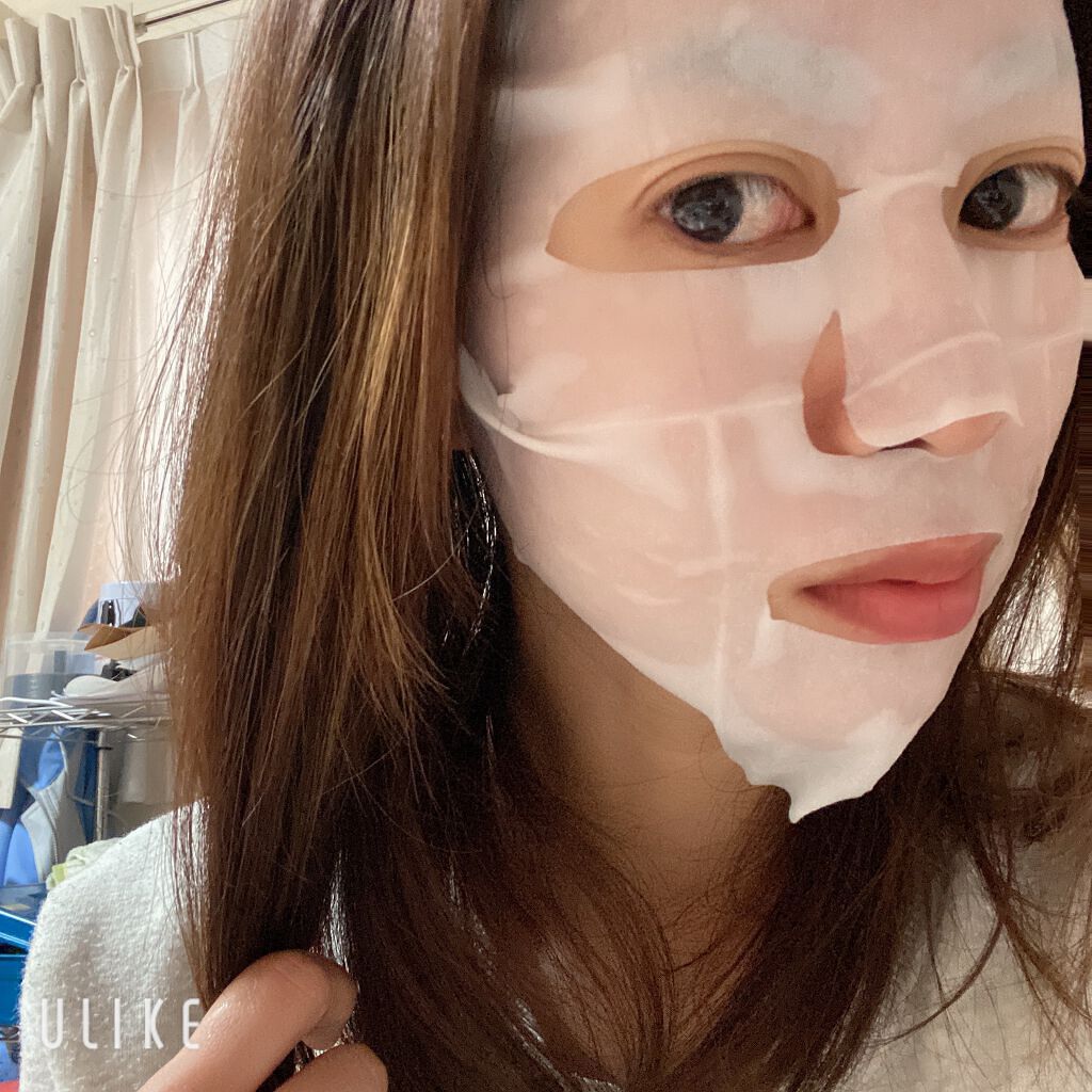 | シワも出来ずにぴたーっと密着。顔との一体感がすごい!そして液がヒタヒタなのに垂れてこない! | 詳細を見る | ||