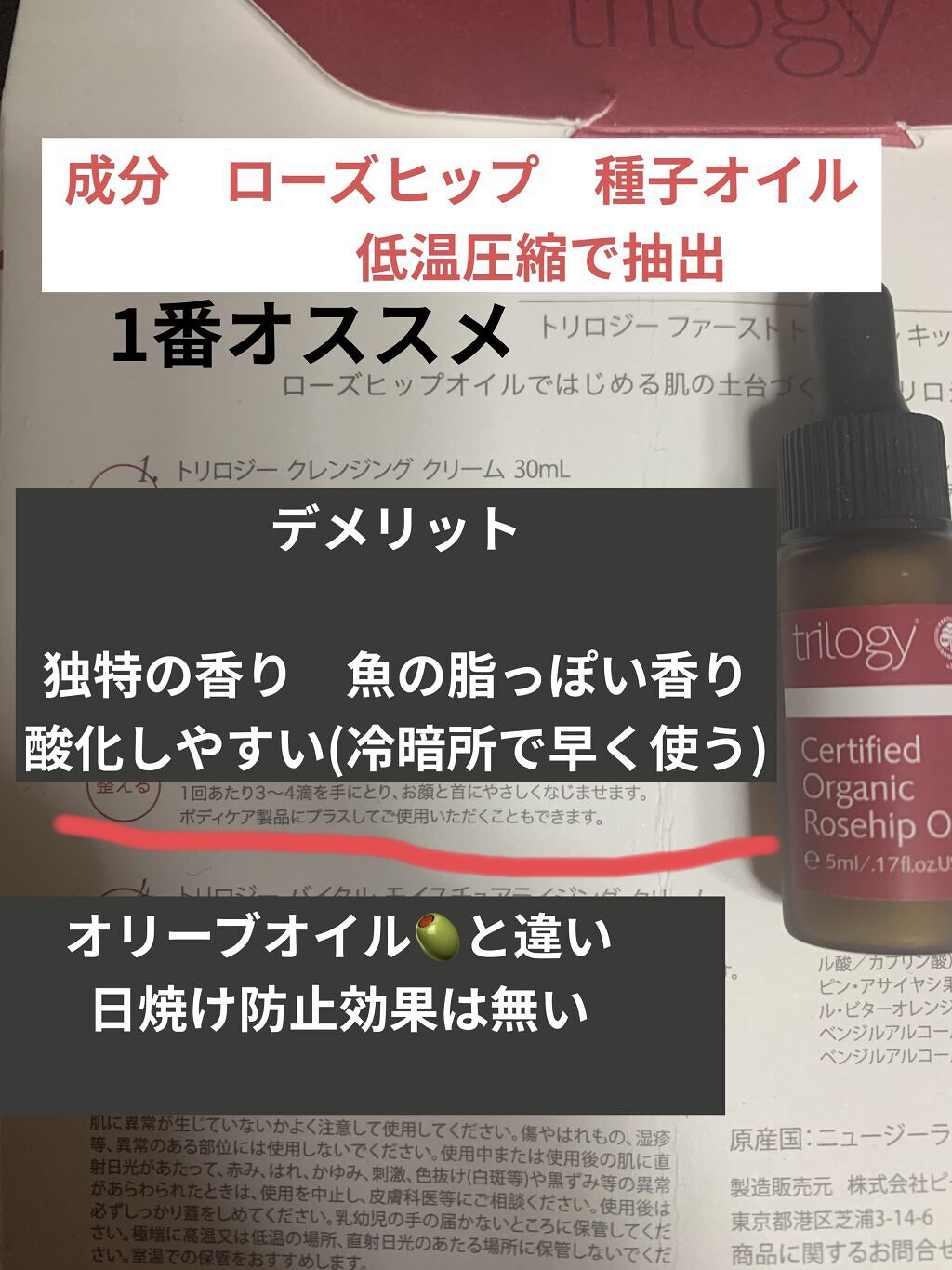 トリロジーのオイルは確かに効果がバッチリ私も出ました‼️もう、使いきってしまいましたが、やはり肌の調子を上げたい時にこのオイルは切っても切れない! 賛否ありますが、私も推してる商品です💘