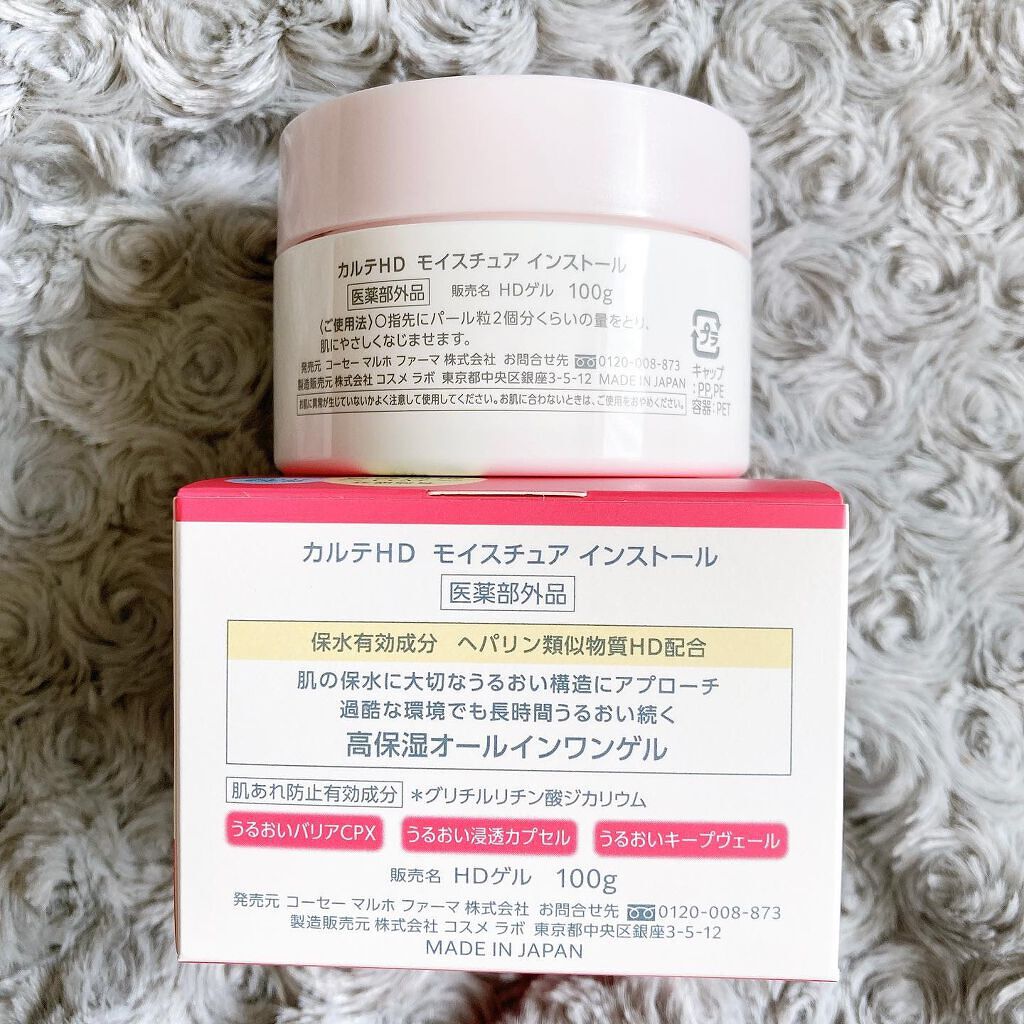 カルテHDモイスチュアインストールをおためししました。保水有効成分ヘパリン類似物質HD配合肌の保水に大切なうるおい構造にアプローチ過酷な環境でも長時間うるおい続く高保湿オールインワンゲルです。アレルギーテスト済み敏感肌のかたの協力によるパッチ...