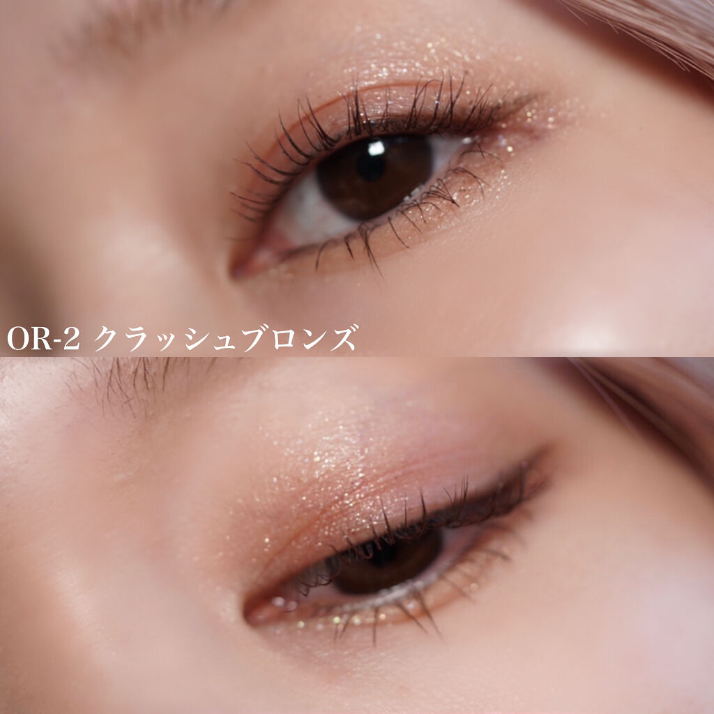 - 質感の違う2つの輝きで火花がクラッシュしたような発光感のある目元印象をつくるアイシャドウ。 まぶたにピタッと密着して、大粒ラメも落ちにくい処方設計。 繊細なカラーパールがきらめくエレクトリカルカラーと存在感のある大粒グリッターでまぶしい輝きを演出するフラッシュグリッターの2つの質感を掛け合わせて、輝き自由自在。 目元以外にも頬や鼻筋のハイライトに使える。