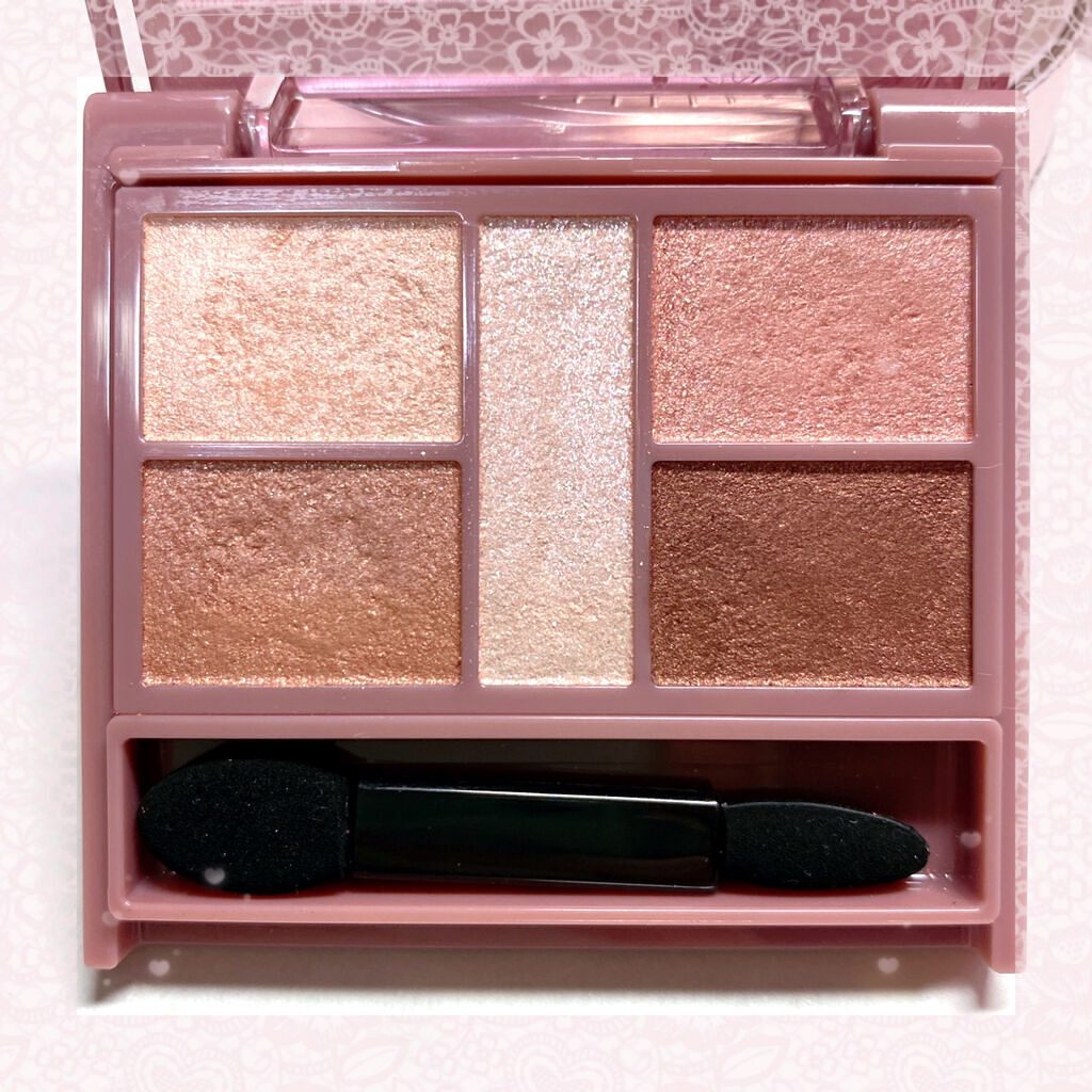 - 1枚のパレットで2つのスタイルが完成! 5色の欲ばりアイシャドウ♥ メインカラーを選んで2つのスタイルが楽しめる! A→B→D でスタイル1 A→C→D でスタイル2 繊細な粉質が、しっとりとまぶたに密着して色落ちを防ぎます。 透明感のあるキラうるトッピングジュエル(繊細ラメ)は、気分によってトッピング!