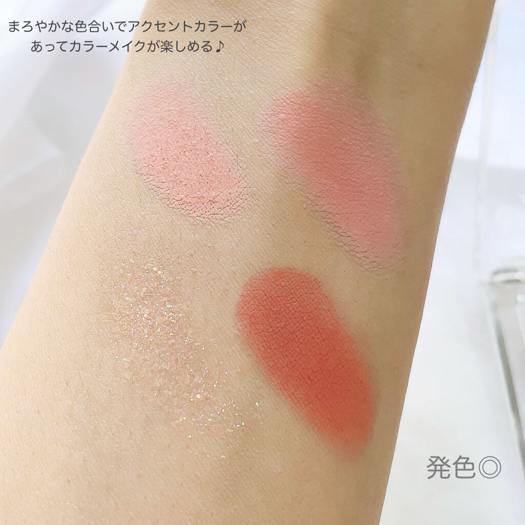 このアイシャドウは発色は薄めだけど その代わりにラメが凄くて!! なのでオレンジメイクしたいけど なかなか挑戦出来ない方とかにも◎ オレンジを単体で塗れば可愛い印象に ブラウンを加えれば大人っぽい印象に とっても可愛いアイシャドウなので 是非チェックしてみてください🍯💗
