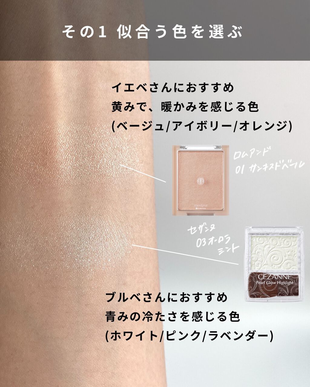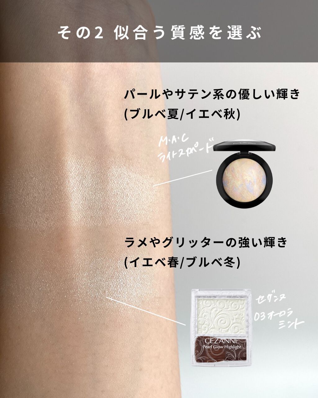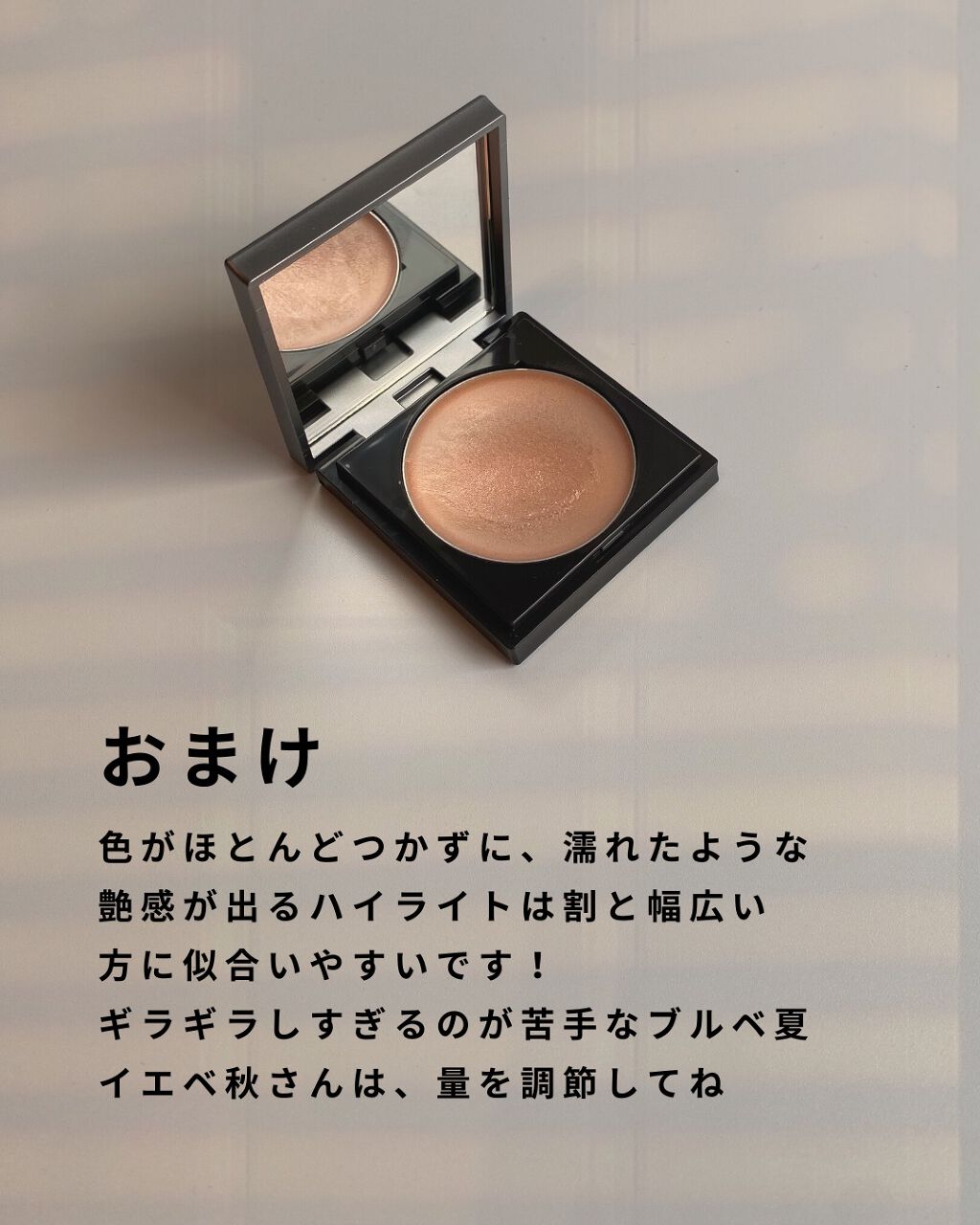 コメント失礼します!7枚目の画像のブルベ夏のところに使ってるハイライトはどちらの商品でしょうか?差し支えなければ教えていただきたいです。