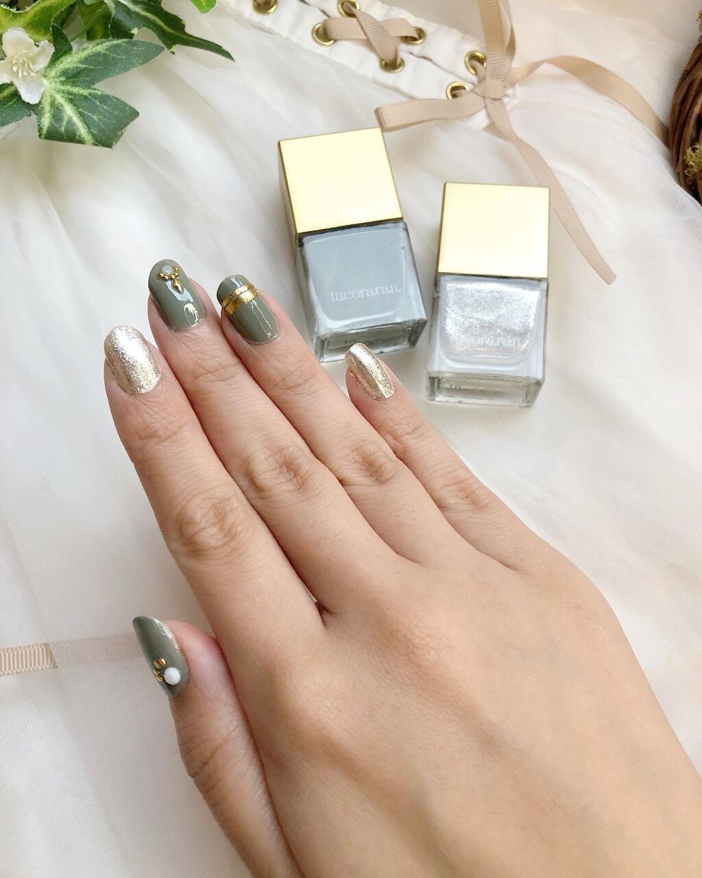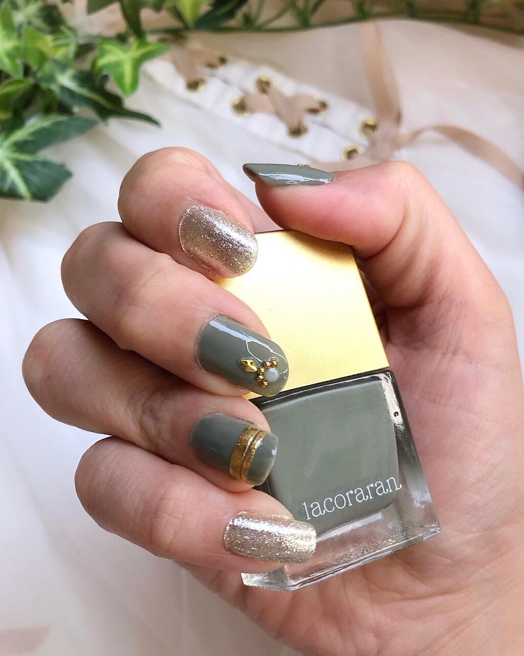 .@lacoraran_ottopowlacoraranネイルポリッシュ左から◆34ミルクティーアッシュ◆28ブラウンシャンパーニュ◆36アウィンネイビー各 税込990円☑︎高級感のあるおしゃれなボトル☑︎インナーキャップがギザギザの持ち手で...