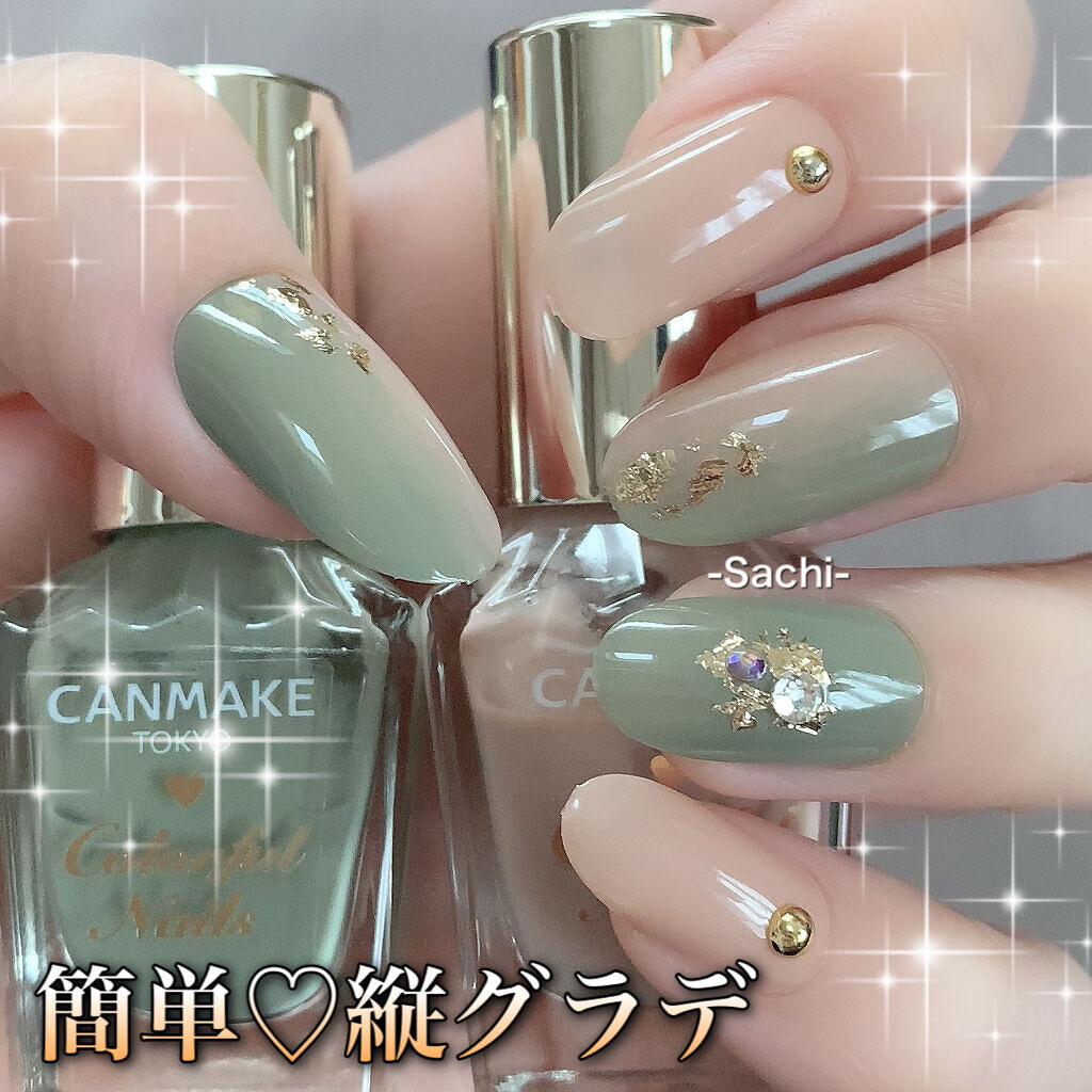 ワンカラーでも指ごとに色を変えるだけでオシャレに見えます💕 画像のようにゴールドラインとストーンを少し足すだけで華やかさがアップ🥰 何度かご紹介したことのあるスポンジで作るグラデーションです✨ スポンジを使うことで境目が綺麗に馴染んでくれます💕 アルミホイルの上でブラウンとトップコートを1:1くらいで混ぜたものを、トップコートのハケに取って3箇所に塗るだけ👌 事前に混ぜたものを塗ることで、爪の上でぼかすより簡単に出来ます💕 ベースカラーが乾く前に点置きしてぼかすことで綺麗にぼかせます✨ スピードが大事なので、使うポリッシュのキャップは全て開けておきましょう😊 天然石のラインはガタガタの方がより天然石っぽく見えるので、ラインを描くのが苦手な方でも大丈夫🙆♀️ 難しそうに見えて、やってみると意外と簡単に出来ます♡