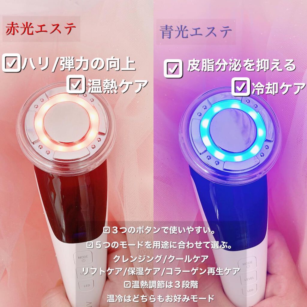 - 4つエステモード、8つ機能を備えて、男女兼用、自分用だけでなくプレゼントにも使える美顔器です。 操作簡単、携帯便利、いつでもどこでも使用できます。 特に秋冬の候でもお肌に対応できて、自宅で気軽にサロン級、エステのスキンケアを叶えます。
