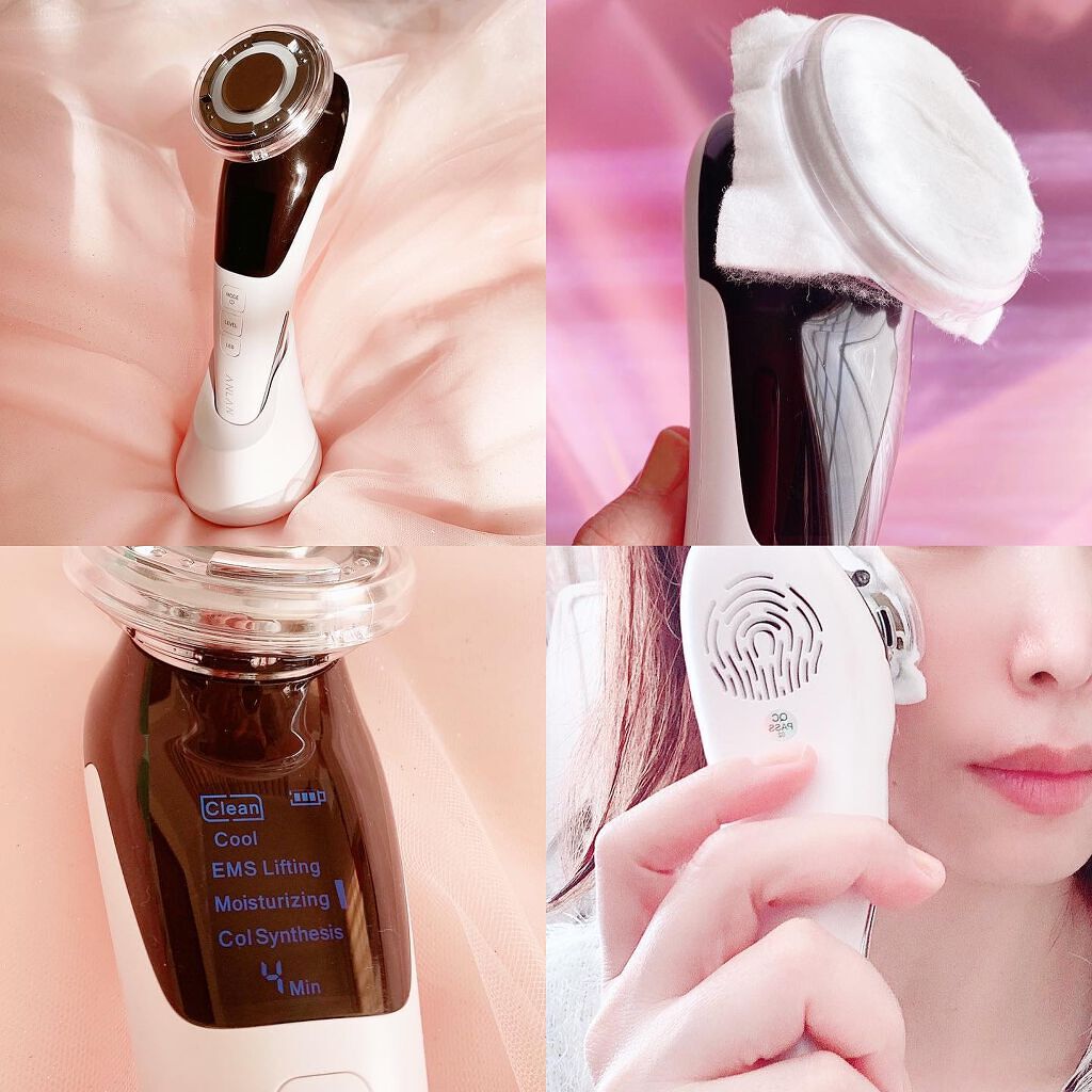 4つのモードで –美白*、ハリ・弾力、保湿ケアー *メラニンの生成を抑えシミ・そばかすを防ぐ 毛穴汚れなどをイオンと振動で取り除いてくれます コットンリングがマグネット式になっているので簡単に脱着できて楽ちんです LEDの色によって効果も変わるそう 赤色:コラーゲンの生成を促し、肌のハリ・弾力ケア