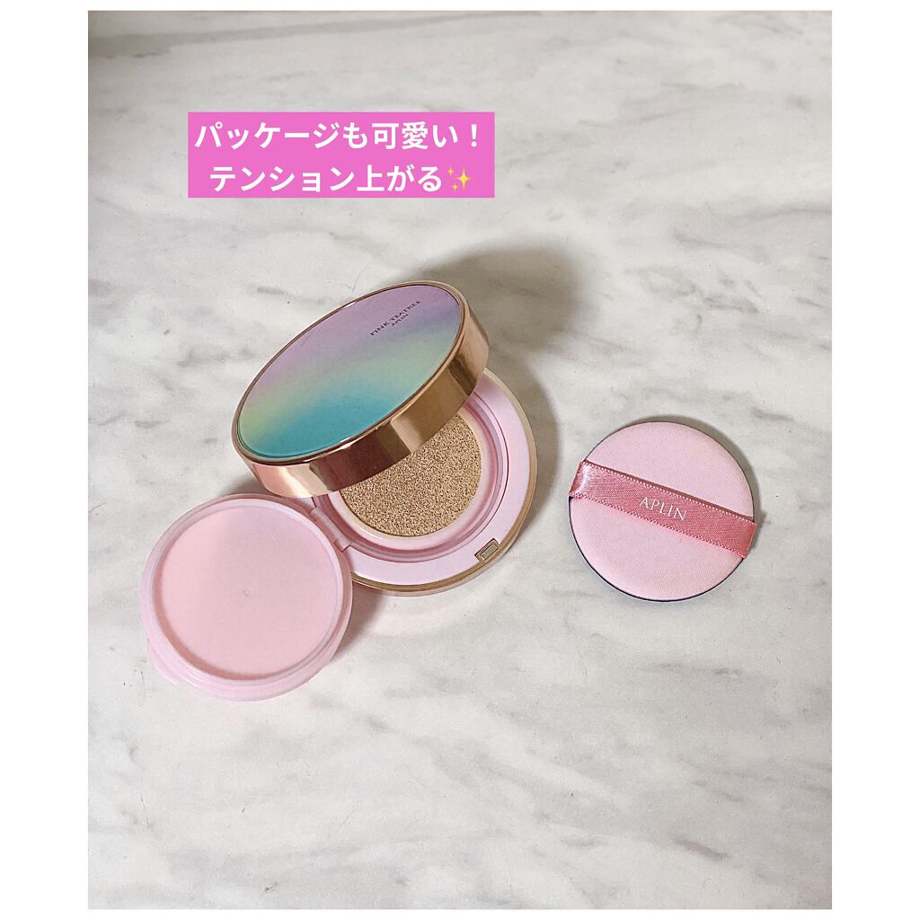 APLIN ピンクティーツリーカバークッション 21号ライトベージュ 2,490円(税込) 少量でよく伸びてハイカバー! 赤みやくすみをしっかりカバ一できるのに、厚塗り感のないなめらかな仕上がり♡ ハイカバーなのにナチュラルなツヤ感とサラッとしつつ、乾燥崩れしにくい仕上がりに感動します!!