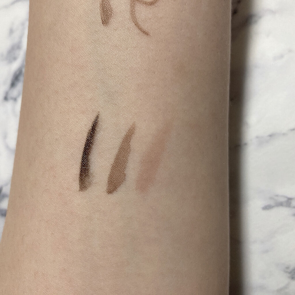 しなやかでコシのある筆が筆圧のコントロールを容易にし、太いラインも細いラインも思い通りに。 シフォンブラウンは、ナチュラルメイクが好きだけどアイラインはしっかり描きたい方におすすめのカラーな感じ! 主張があまりなく、抜け感を意識した仕上がりをつくってくれる👀🤍
