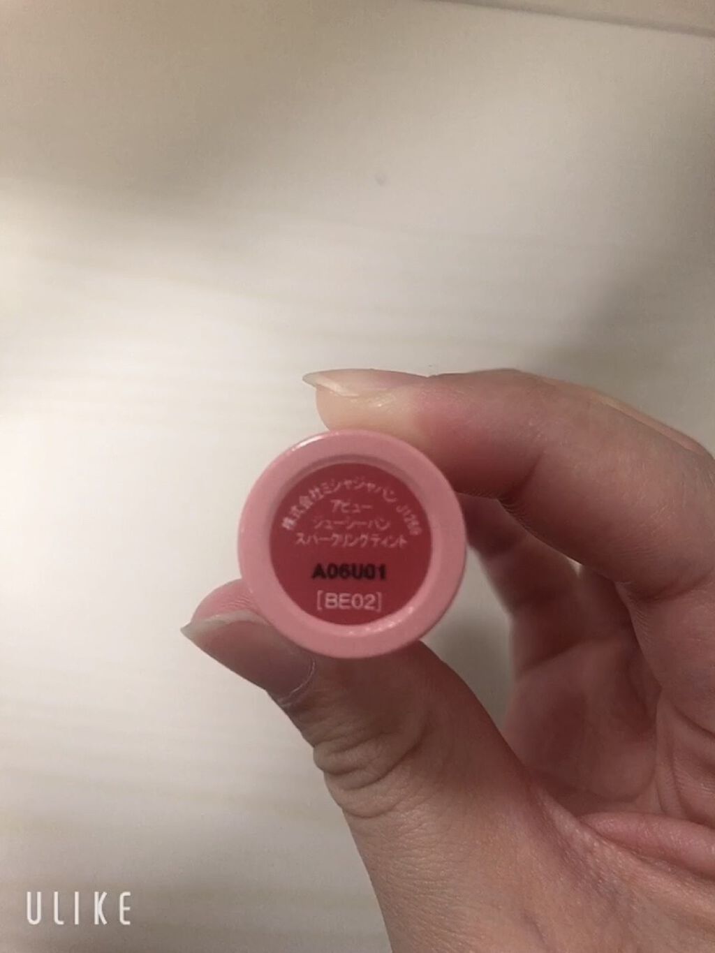 ラメがめちゃくちゃ可愛いA’pieuのジューシーパン スパークリングティント。BE01のときめくイチジクはベースがベージュ系のナチュラルカラーでゴールドやホワイト系のラメが入っています! 普段から濃いめのリップが好きな方は物足りないと感じると思うので、こちらを全体的に塗った上に内側に濃いめのリップ塗ってもとても可愛く仕上がります🫶🏻 ティント効果もあって、ティッシュオフするとツヤ感は失われるものの色とラメはしっかり残ります!