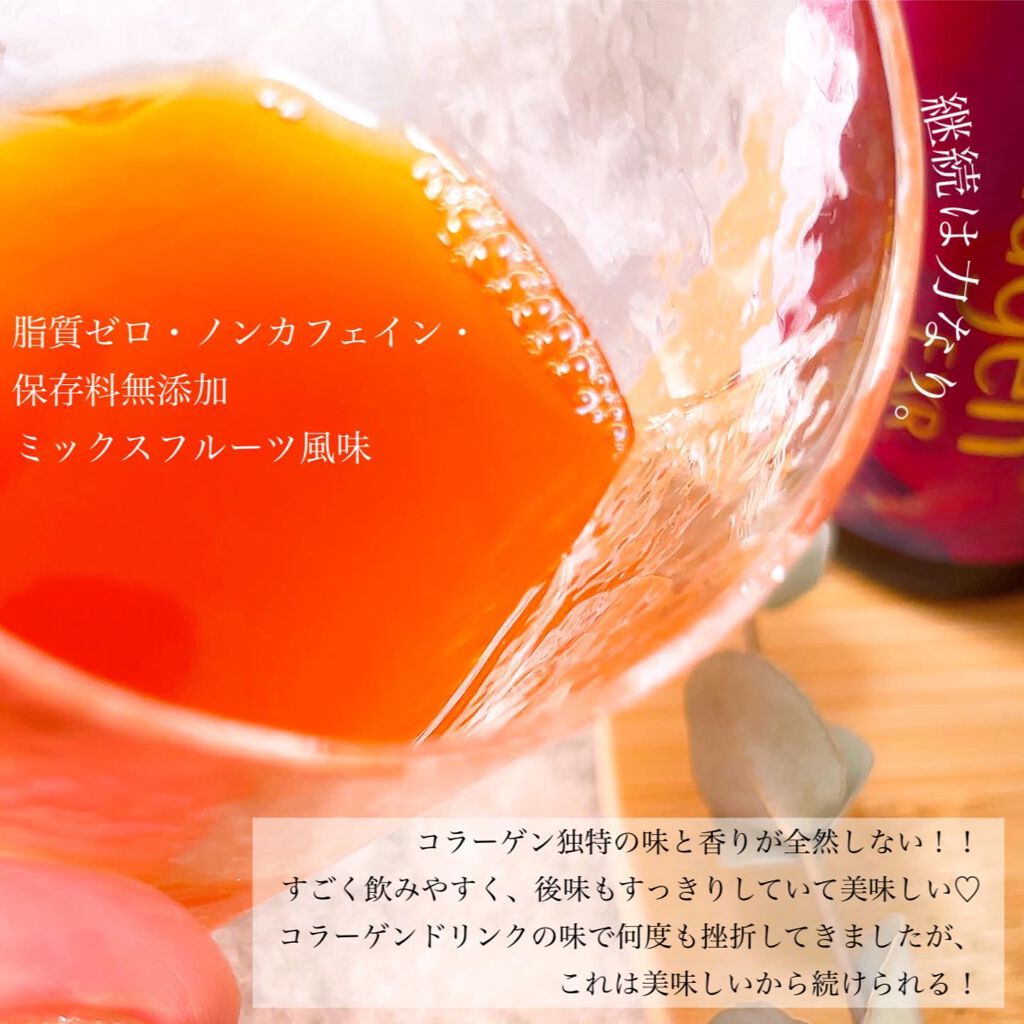 飲みやすいし、飲みたい時にドラッグストアなどで手に入る気軽さがよくて、自分でも何度も購入しているコラーゲンドリンク💕 すごく飲みやすくアセロラに近い爽やかな酸味だけれど酸っぱすぎないのいいし、カフェインレスなので夜🌙も睡眠を気にせず飲めるのが好きで...💕 魚由来は豚皮由来に比べて吸収されやすいと言われているので、個人的には入っているコラーゲンの種類が豚ではなく❝ 魚❞由来のフィッシュコラーゲン⤴︎✨
