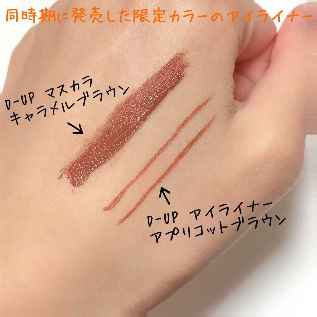 D-UPパーフェクトエクステンションマスカラforカール【使った商品】マロングレージュ【商品の特徴】¥1650円(税込)お湯+洗顔料オフ可25.5mmのコンパクトブラシ【使用感】渋い栗色ニュアンスで締め・抜け・柔らかさも合わせ持った色印象根元...
