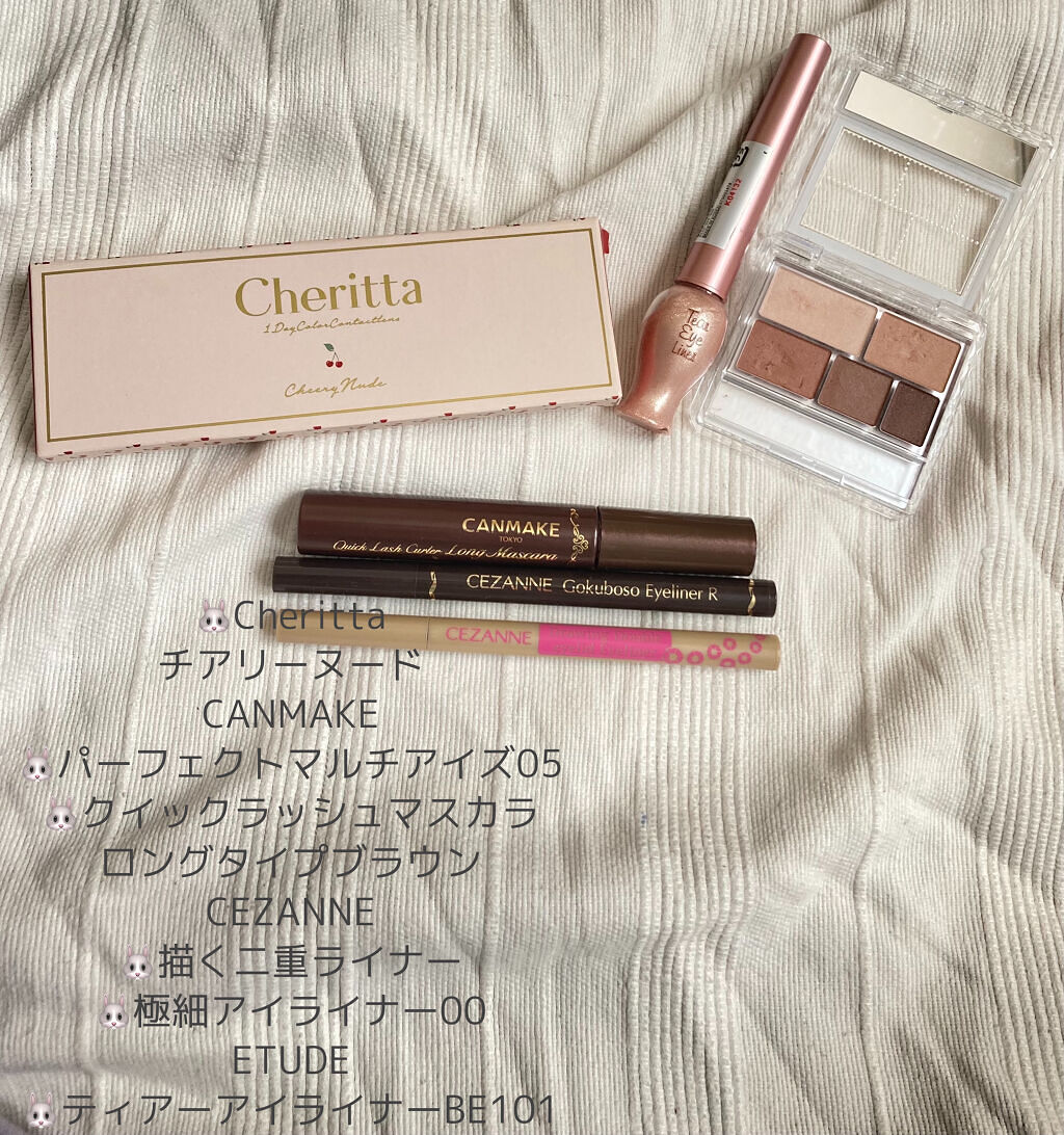 自分用なので雑なのは悪しからず撮影状況によりアイシャドウが綺麗に映っておりません🥲...............#パーフェクトマルチアイズ_05#クイックラッシュカーラー_ロングマスカラ#ナチュラルチークn#描くふたえアイライナー#極細アイラ...