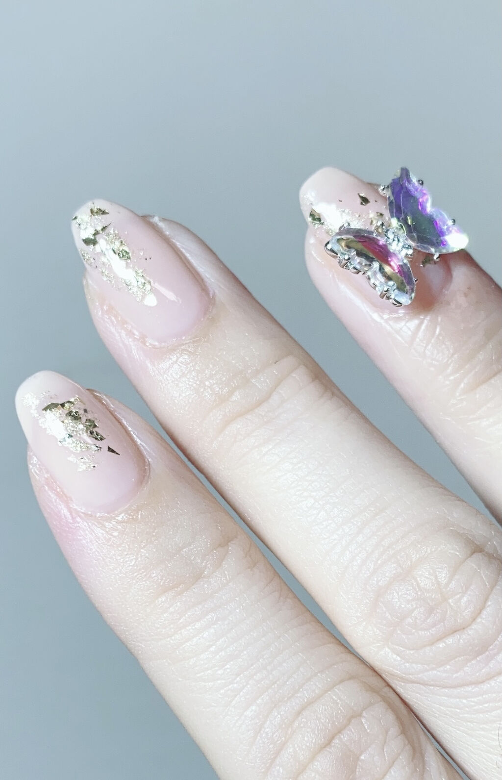 2021年のネイルデザインでバズってる、ガラスフレンチをやってみました💕とにかくキラキラが可愛い💎ファンデーションカラーズの透明感ある色と、純銀のホログラムの相性抜群でした😍✨是非参考にしてみて下さい💕①ラベンダーピンクを4度塗り❣️②フレン...