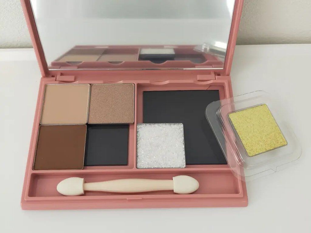 パケも中身も美しすぎて眺めているだけで思わずため息が出ちゃうアイシャドウ。 職場の先輩が遊びに来てくれた際に、出産お疲れ様ということでプレゼントしてくれました😭💕嬉しすぎる! 左下のゴールドラメはプライマー。 しっとりとしていて保湿成分も配合されているそうです。テラコッタ×グリーンで一見難しそうな配色ですが、このプライマーと左上のベージュがいい仕事をしてくれます🤍 華やかだけど肌馴染みはよく、グリーンシャドウに挑戦してみたいって方にもおすすめです🙆♀️♡