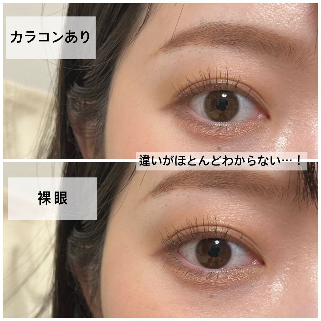 いつもつけているカラコンよりは着色直径が13.0mmと小さめなので物足りないなーと思ってしまいました😣 色も私の裸眼からはあまり変化を感じられず🥲口コミはすごくいいので私の目とは相性が悪かったのかも😭 噂に聞いていた通り、ほとんど裸眼に近いというのは本当だったので、学校など、バレたくない場面では本当に適していると思います!