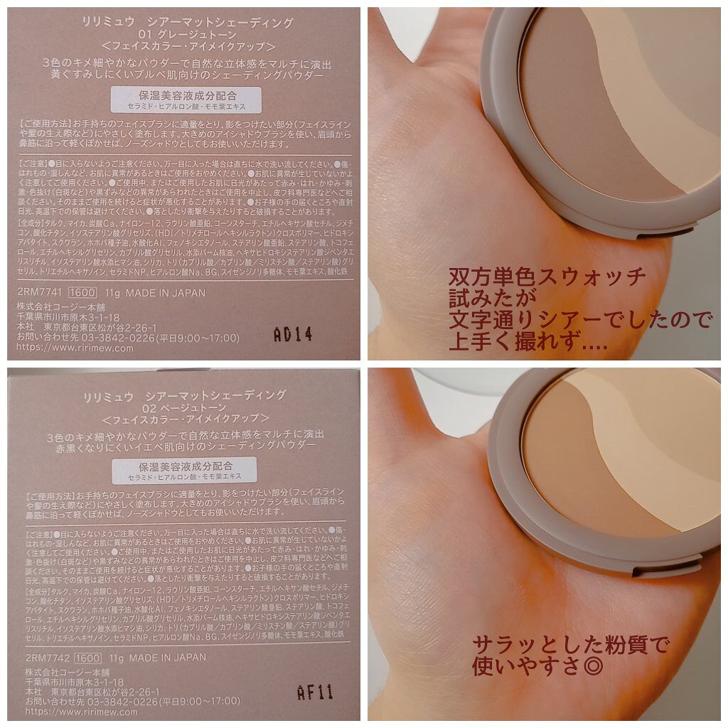 やっぱり01の方がより本物の影っぽく見えると思いました! 3色別々にも使えるし、混ぜて調整することもできるし、発色も強すぎず弱すぎずで、本当に使いやすいです。 久しぶりに買ってみて良かったと思いました!