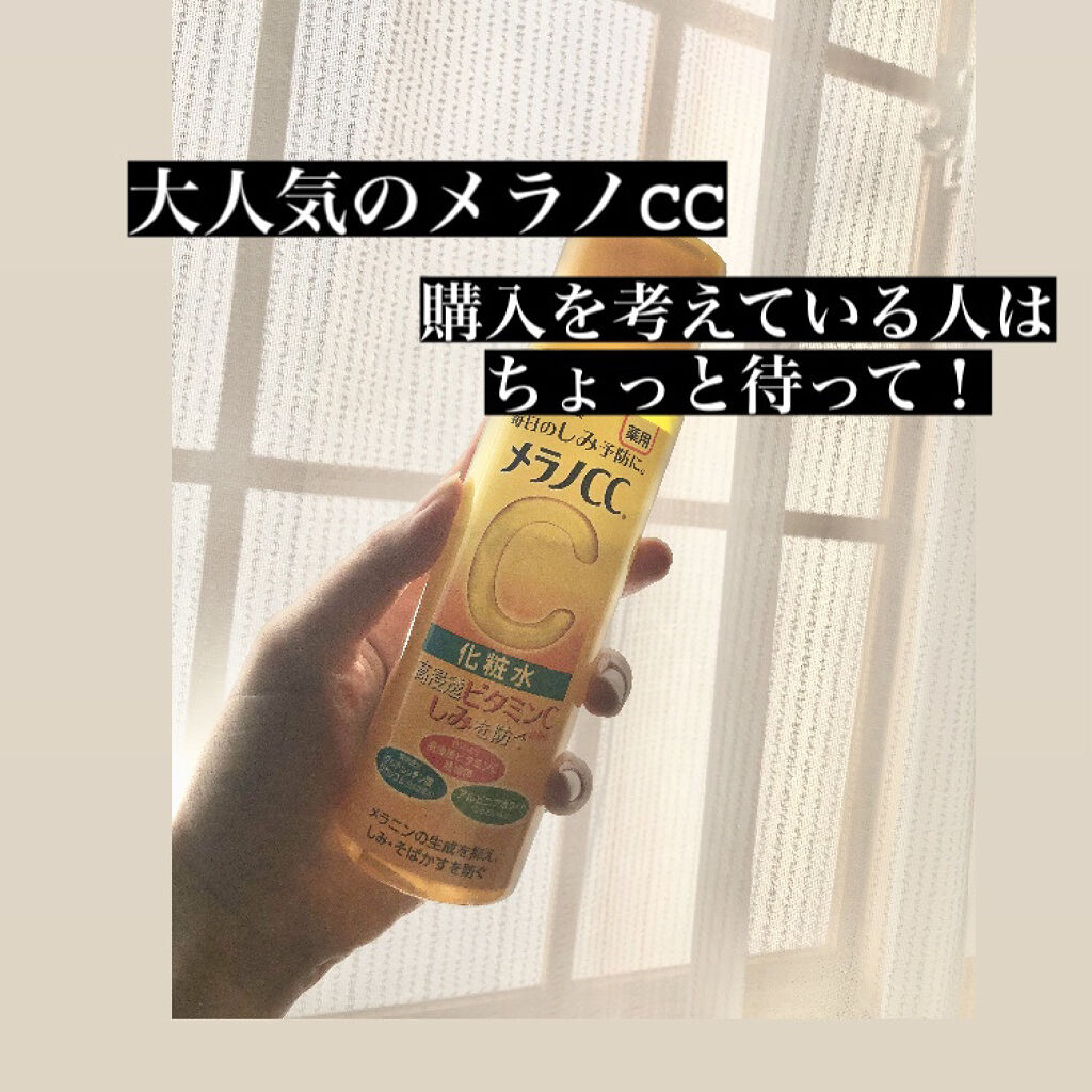 - 「メラノCC 薬用しみ対策 美白化粧水」は、顔全体にうるおいを与えながら、しみ対策できる薬用美白化粧水。 美白有効成分高浸透ビタミンC誘導体*1が角質層すみずみまで浸透し、メラニンの生成を抑え、しみ・そばかすを防ぎ、透明感のある肌へと導きます。 また、抗炎症成分*2と3種のうるおい成分*3を配合。ニキビ痕が気になる肌にもうるおいを与え、肌を整えます。 さわやかな柑橘系の香りです。 *1:3-O-エチルアスコルビン酸 *2:グリチルリチン酸ジカリウム *3:アルピニアホワイト、レモンエキス、グレープフルーツエキス