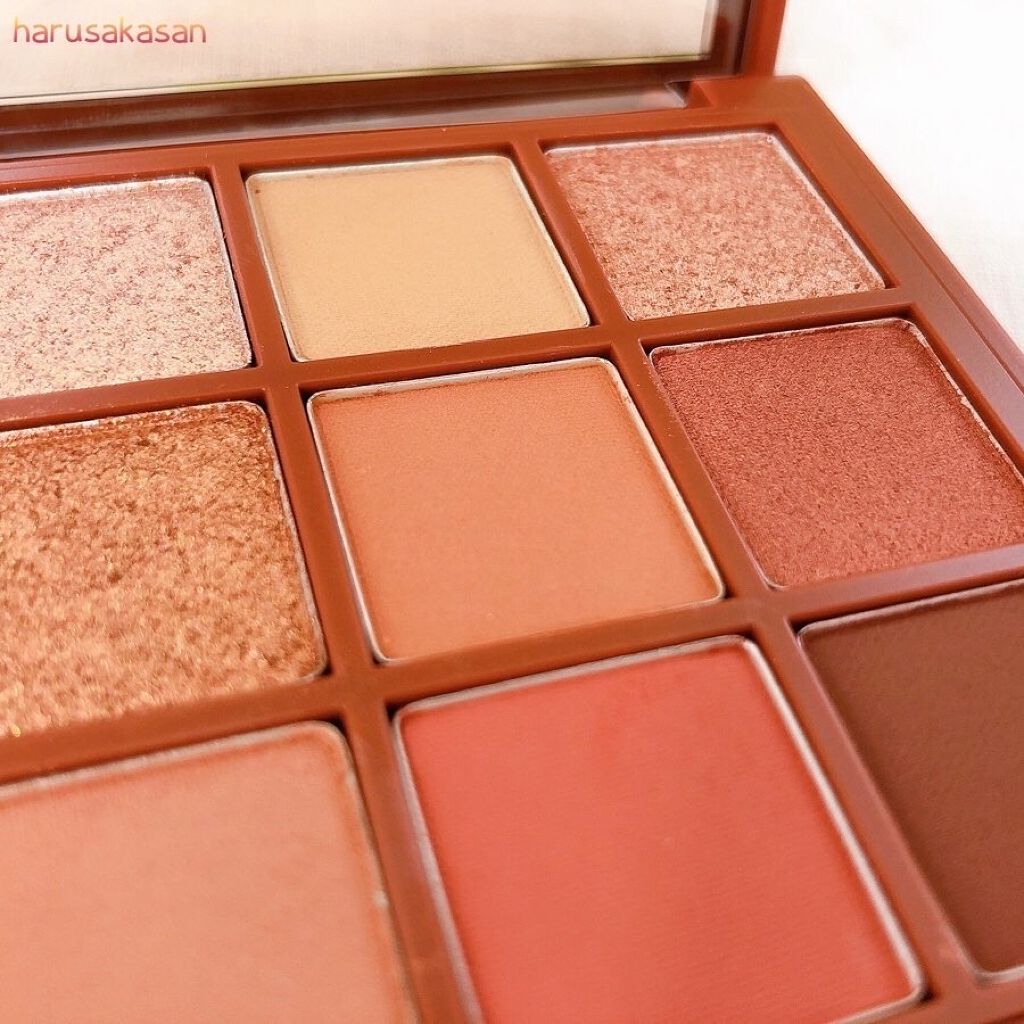 - ロマンチックに染まる、優雅な夕焼けEYE♡鮮やかに色づく紅葉のように、温かみのあるレッドブラウンカラーの9色アイシャドウパレット。