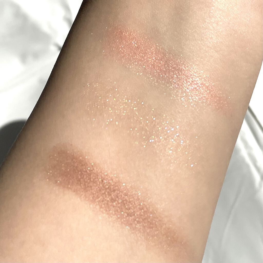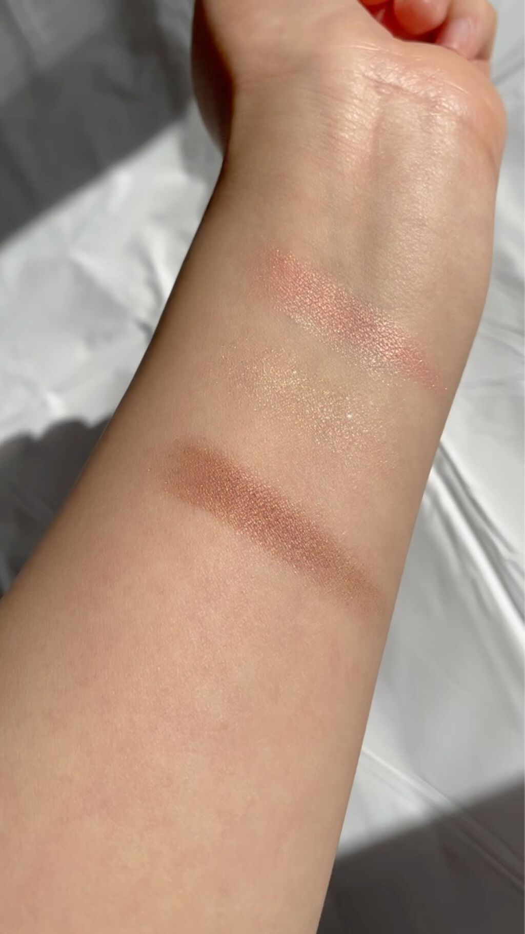 白いハイライトは凄かった!!! 白いハイライトは発光するというよりはマット寄り もうひとつはガッツリ発光するパールハイライト ハイライトも質感を2種類組み合わせるとより肌が立体的にみえるので是非試してみてください🫶✨