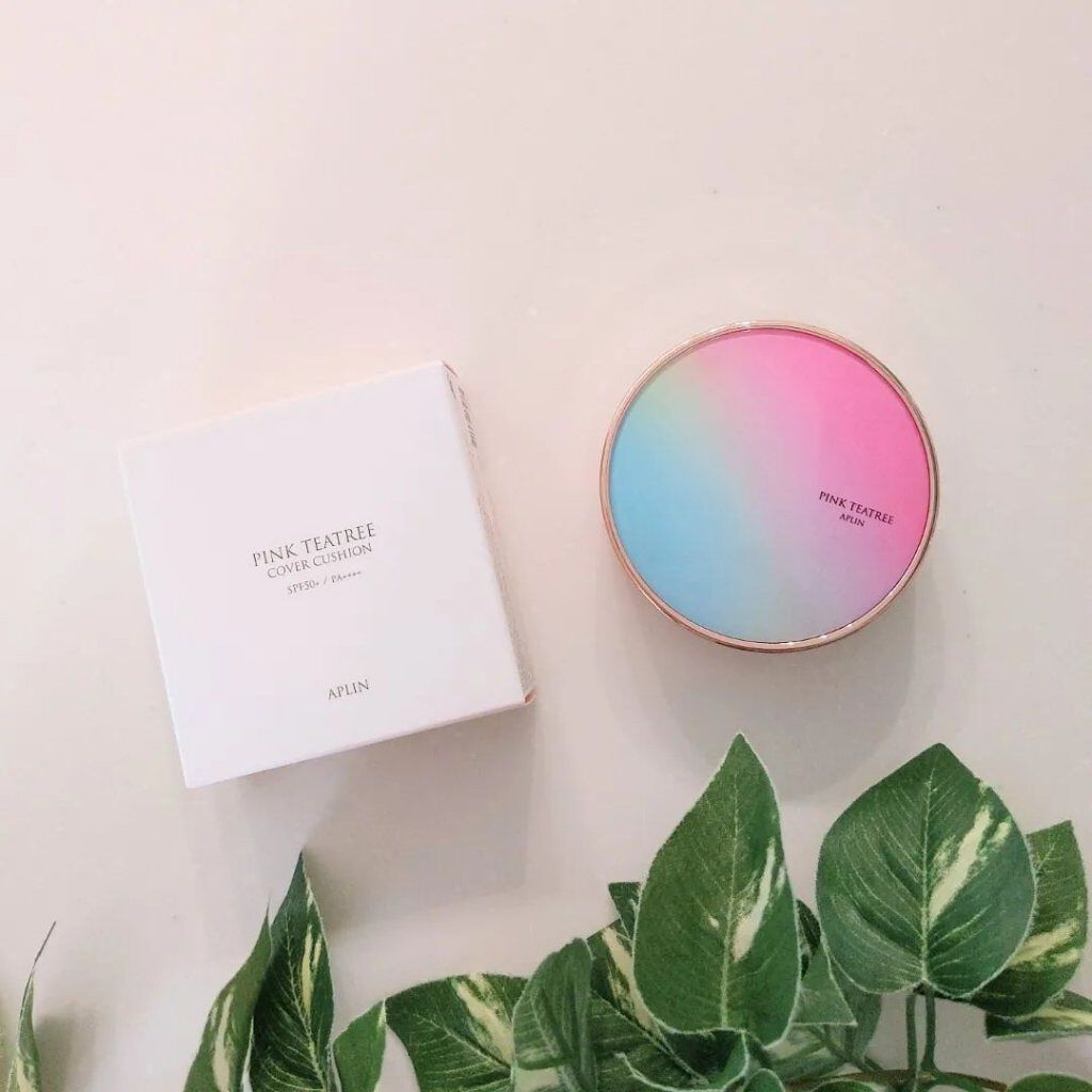 APLIN ピンクティーツリーカバークッション 21号ライトベージュ 2,490円(税込) 少量でよく伸びてハイカバー! 赤みやくすみをしっかりカバ一できるのに、厚塗り感のないなめらかな仕上がり♡ ハイカバーなのにナチュラルなツヤ感とサラッとしつつ、乾燥崩れしにくい仕上がりに感動します!!