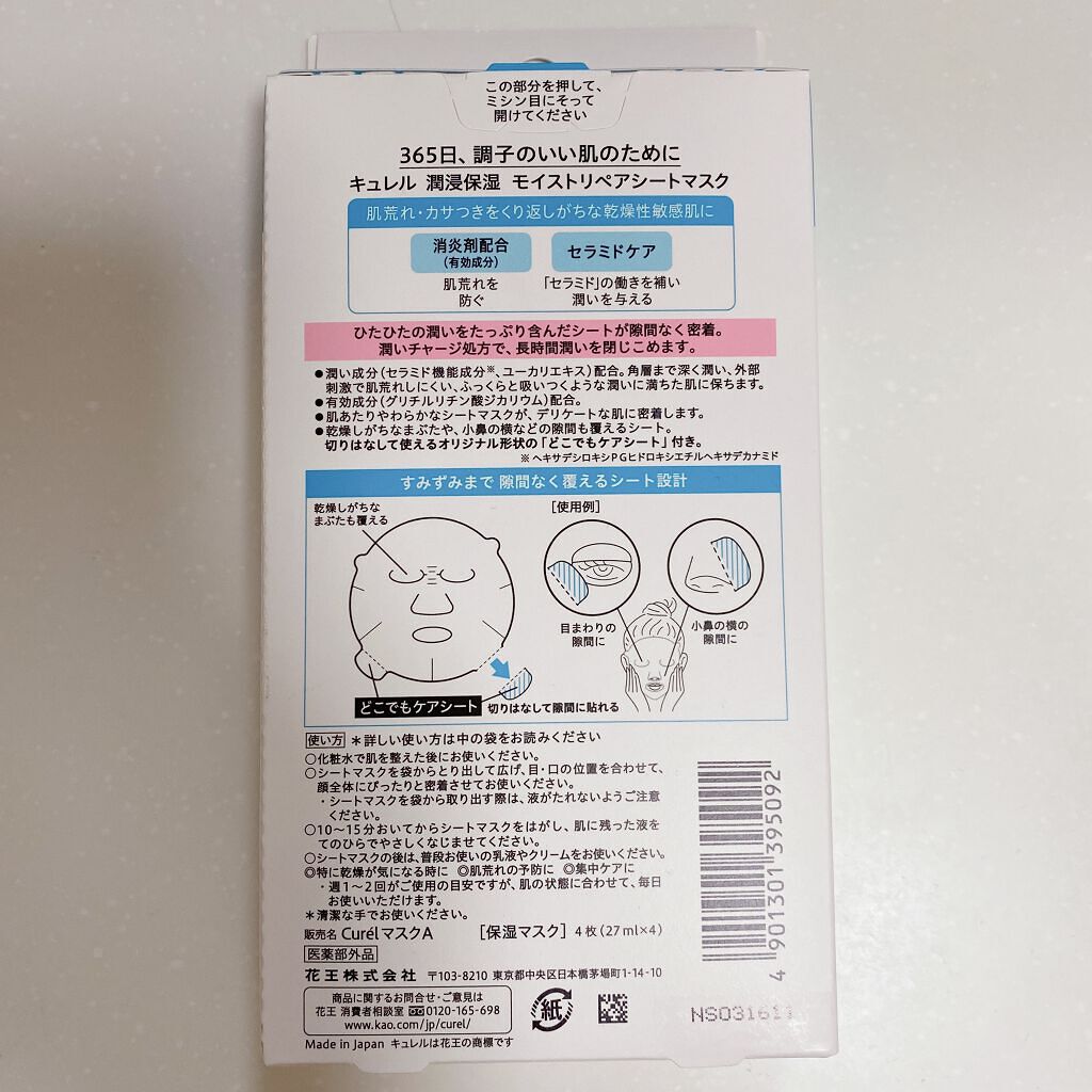 商品詳細情報キュレル 潤浸保湿 モイストリペアシートマスク